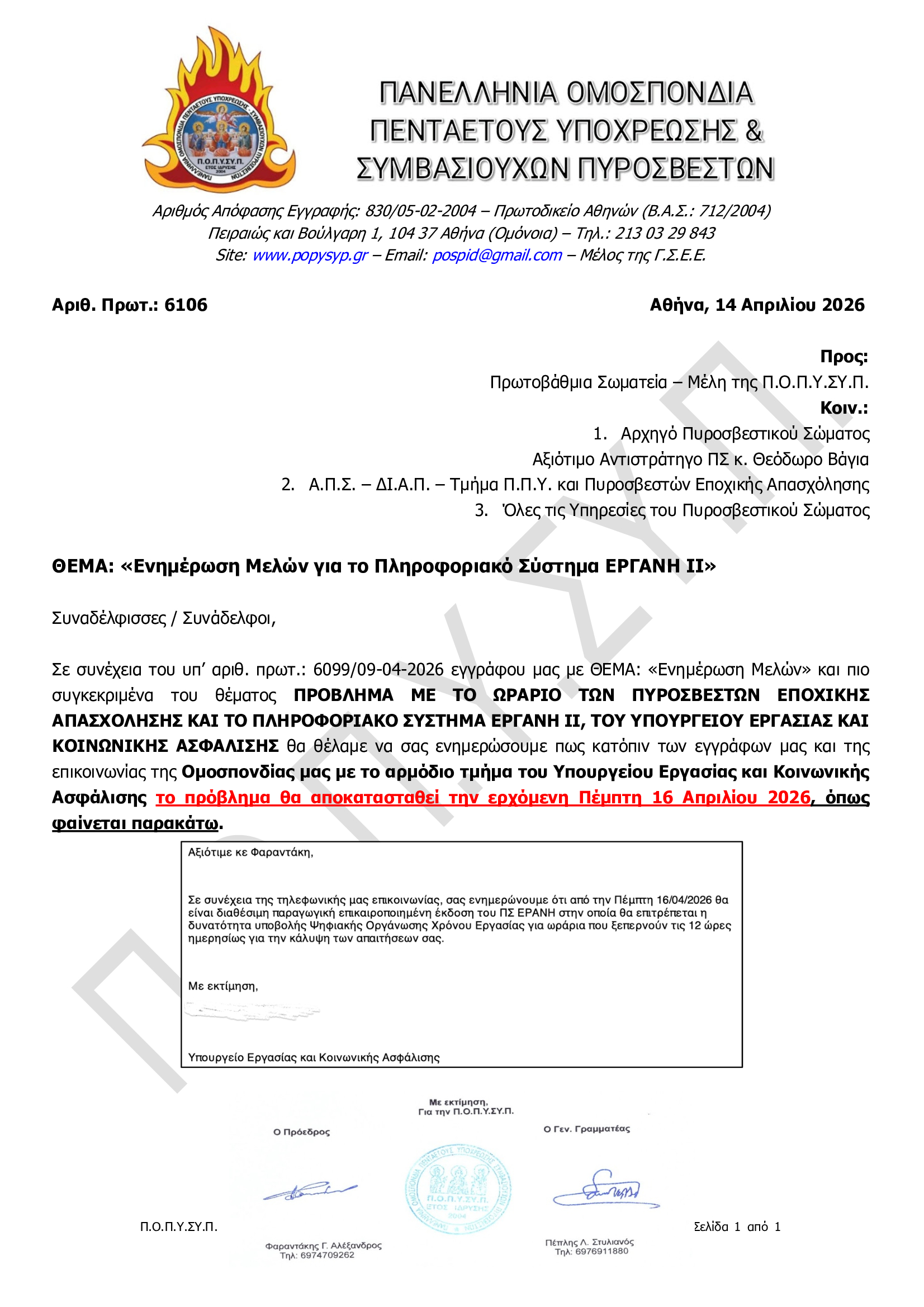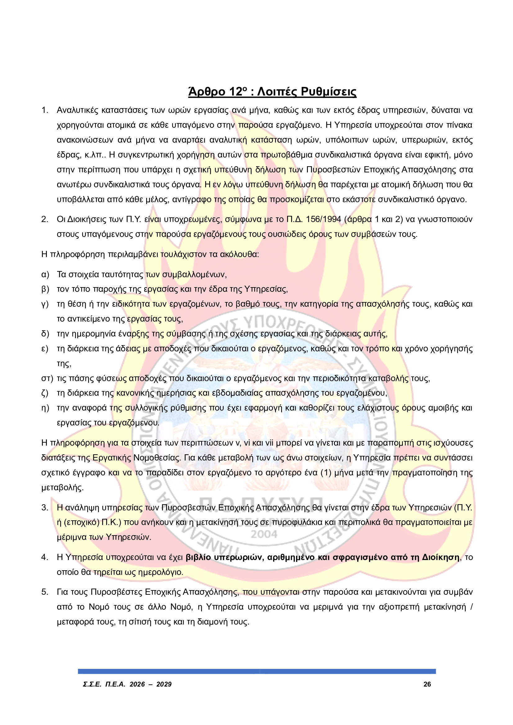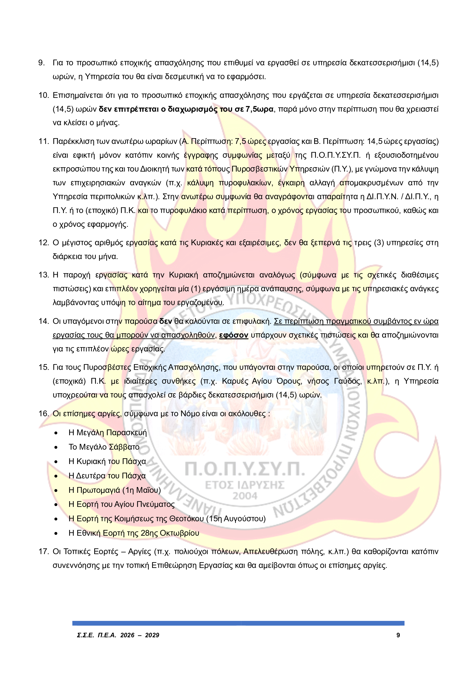 Άμεση εφαρμογή του ωραρίου εργασίας των Πυροσβεστών Εποχικής Απασχόλησης