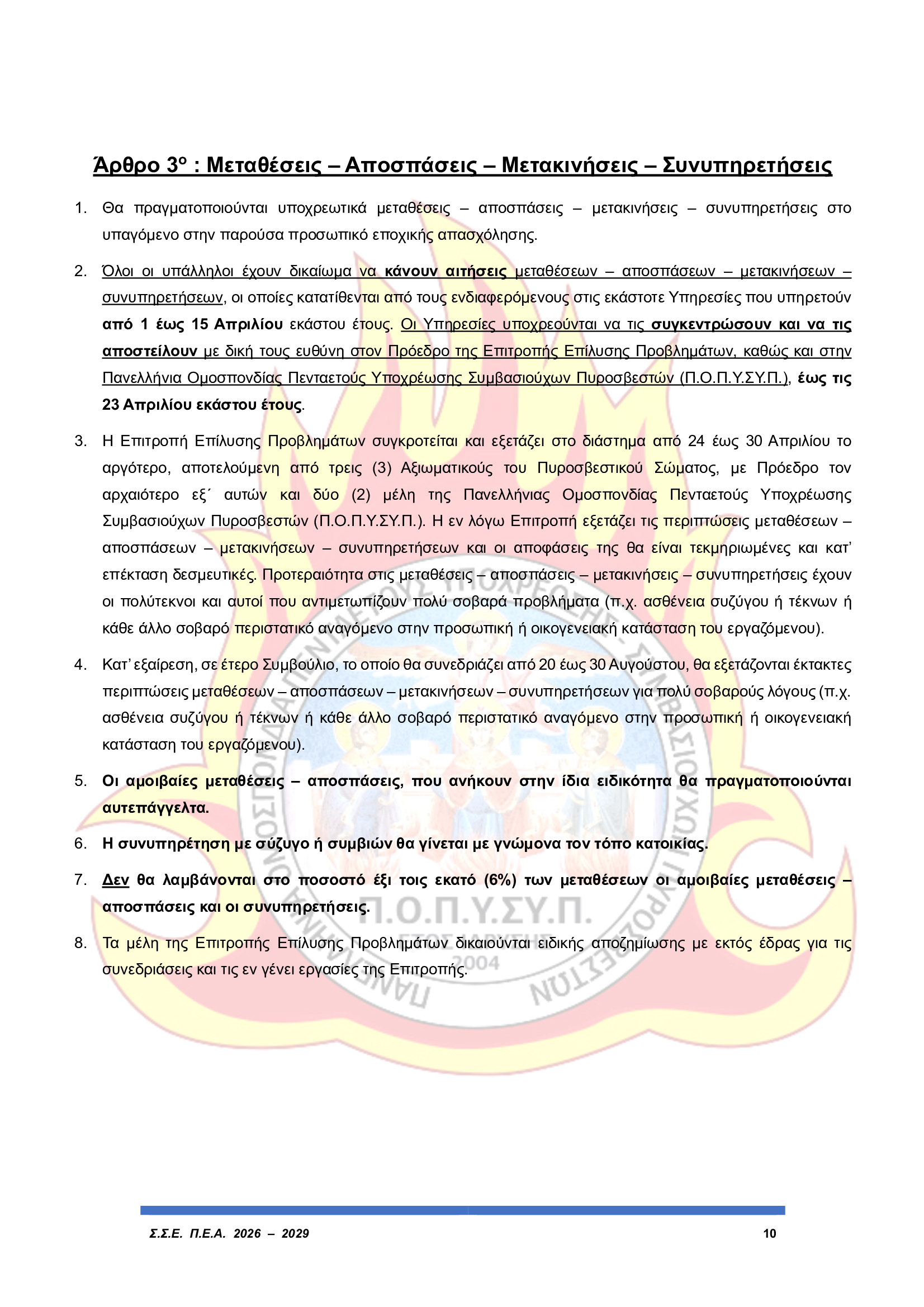 Μεταθέσεις – Μετακινήσεις Πυροσβεστικού Προσωπικού χωρίς πρόβλεψη διαμονής και οικονομικής ενίσχυσης