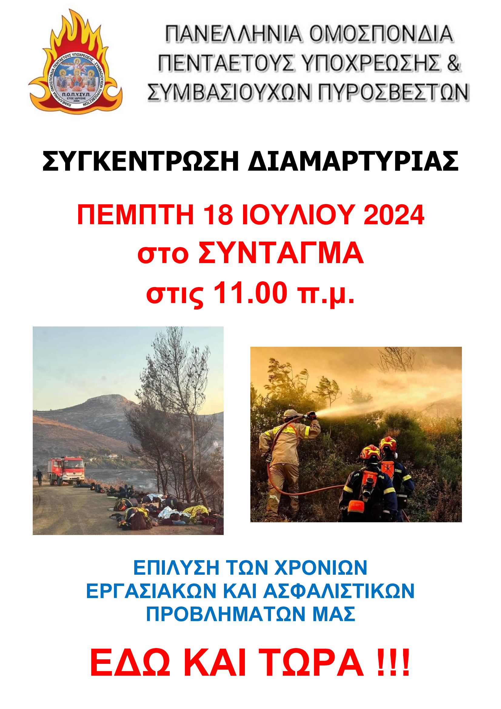 Συγκέντρωση Διαμαρτυρίας την Πέμπτη 18 Ιουλίου 2024, στο Σύνταγμα στις 11.00 π.μ.