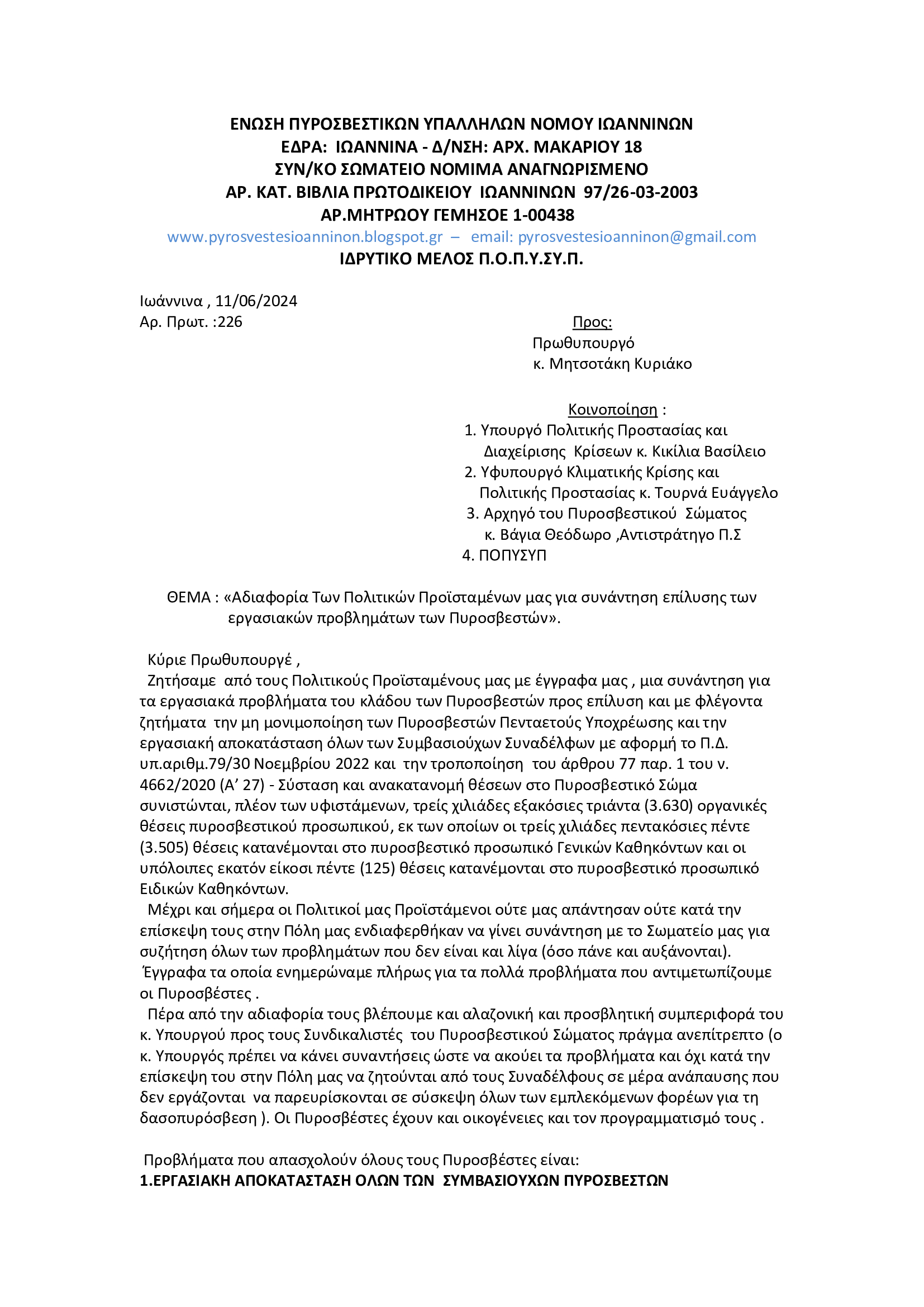 Αδιαφορία των Πολιτικών Προϊσταμένων μας για συνάντηση επίλυσης των εργασιακών προβλημάτων των Πυροσβεστών