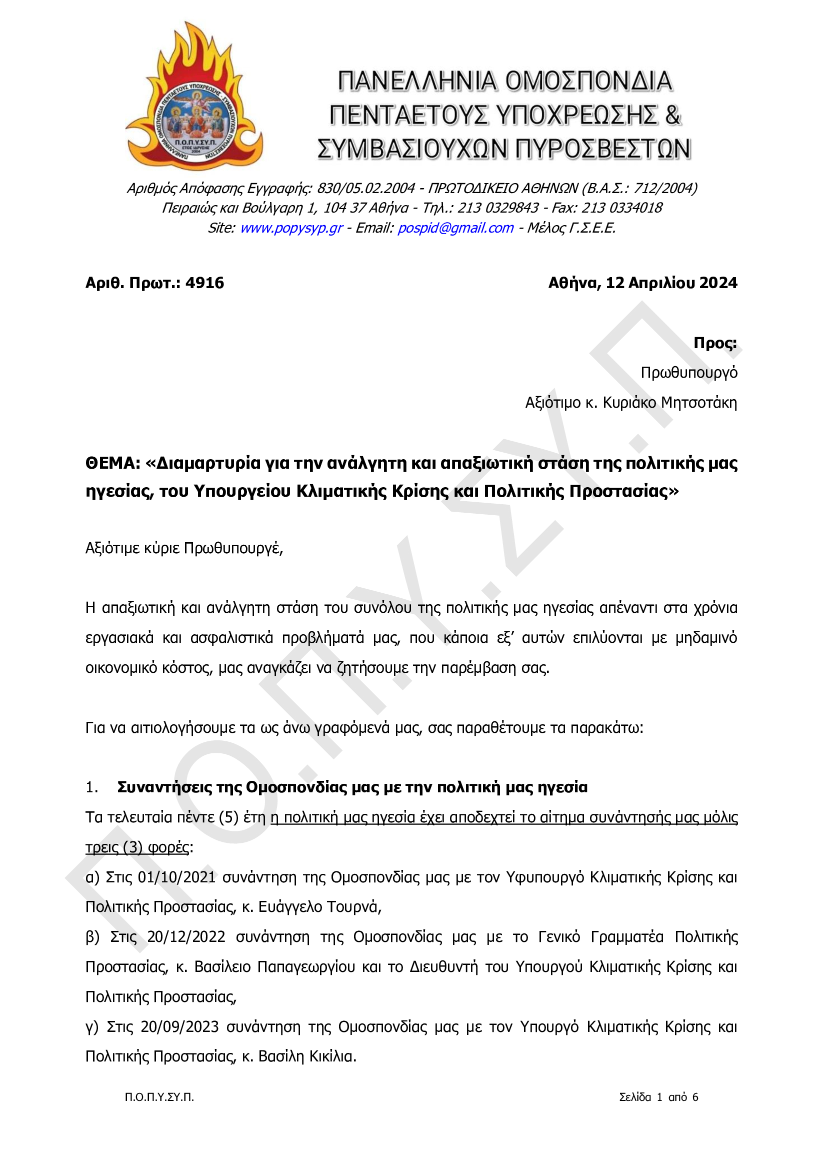 Διαμαρτυρία για την ανάλγητη και απαξιωτική στάση της πολιτικής μας ηγεσίας, του Υπουργείου Κλιματικής Κρίσης και Πολιτικής Προστασίας
