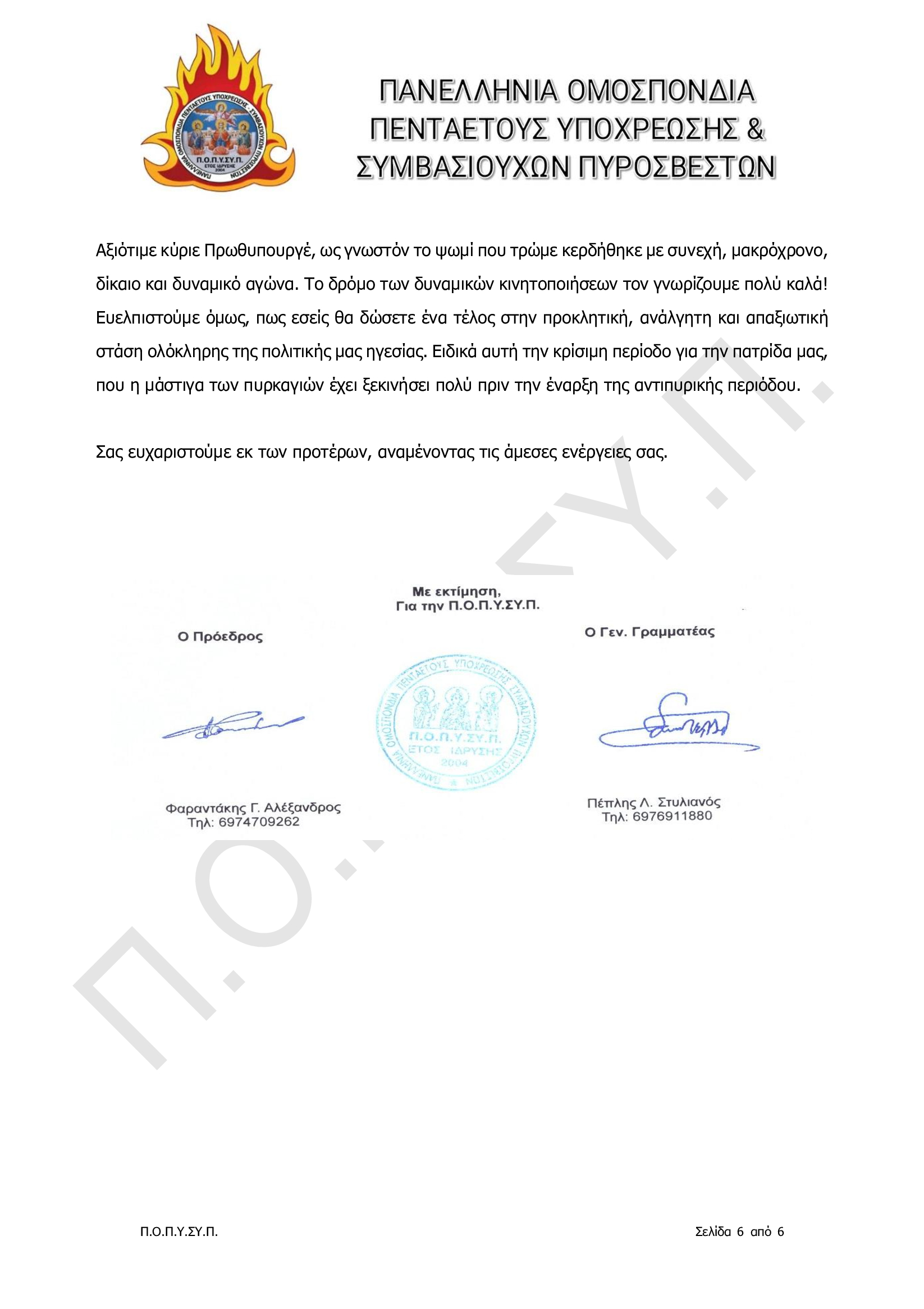 Πανελλήνια Ομοσπονδία Πενταετούς Υποχρέωσης & Συμβασιούχων Πυροσβεστών
