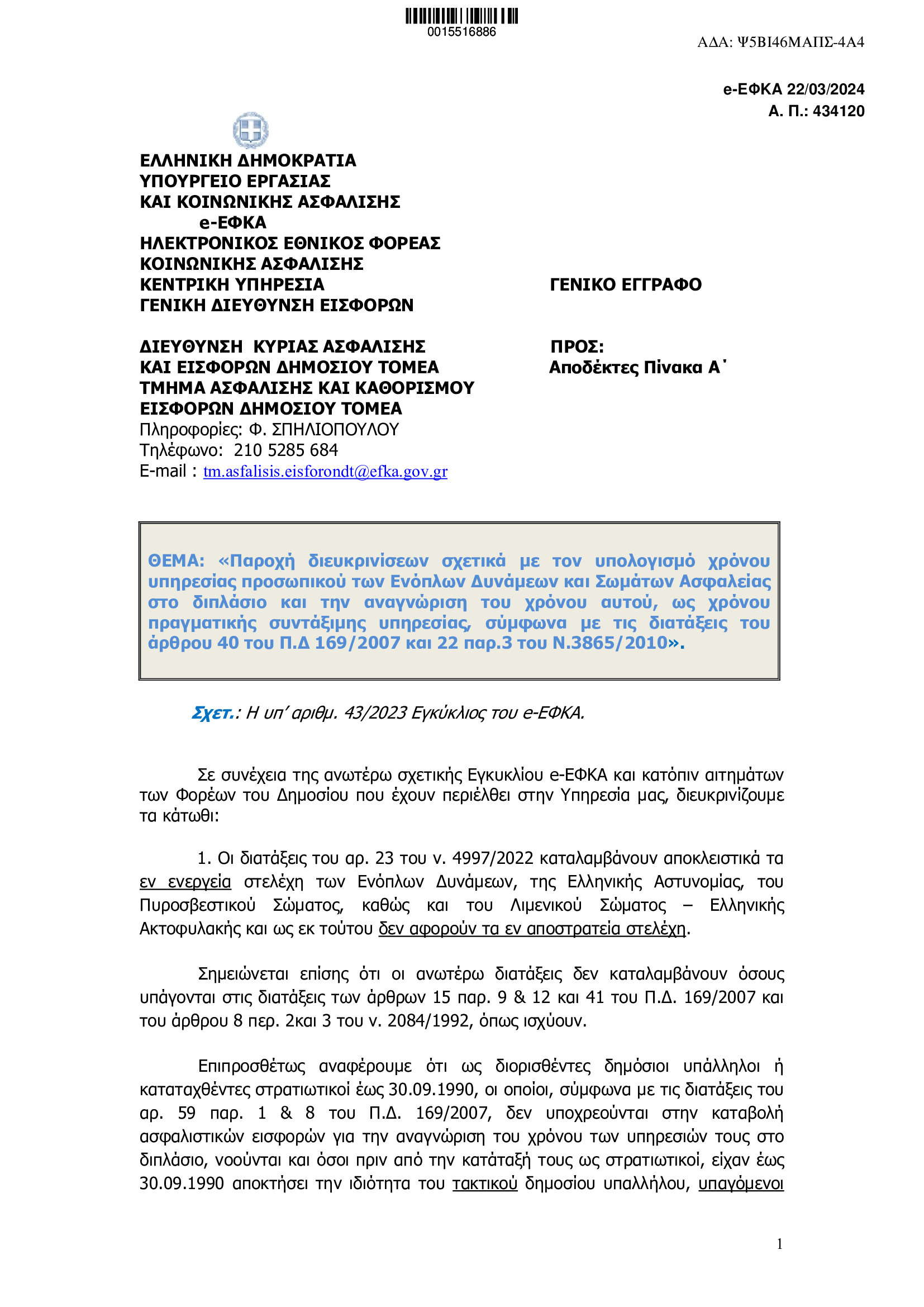 ΓΕΝΙΚΟ ΕΓΓΡΑΦΟ ΓΙΑ ΔΙΕΥΚΡΙΝΙΣΕΙΣ ΣΤΗΝ ΕΓΚΥΚΛΙΟ 43 2023 ΓΙΑ ΕΝΣΤΟΛΟΥΣ