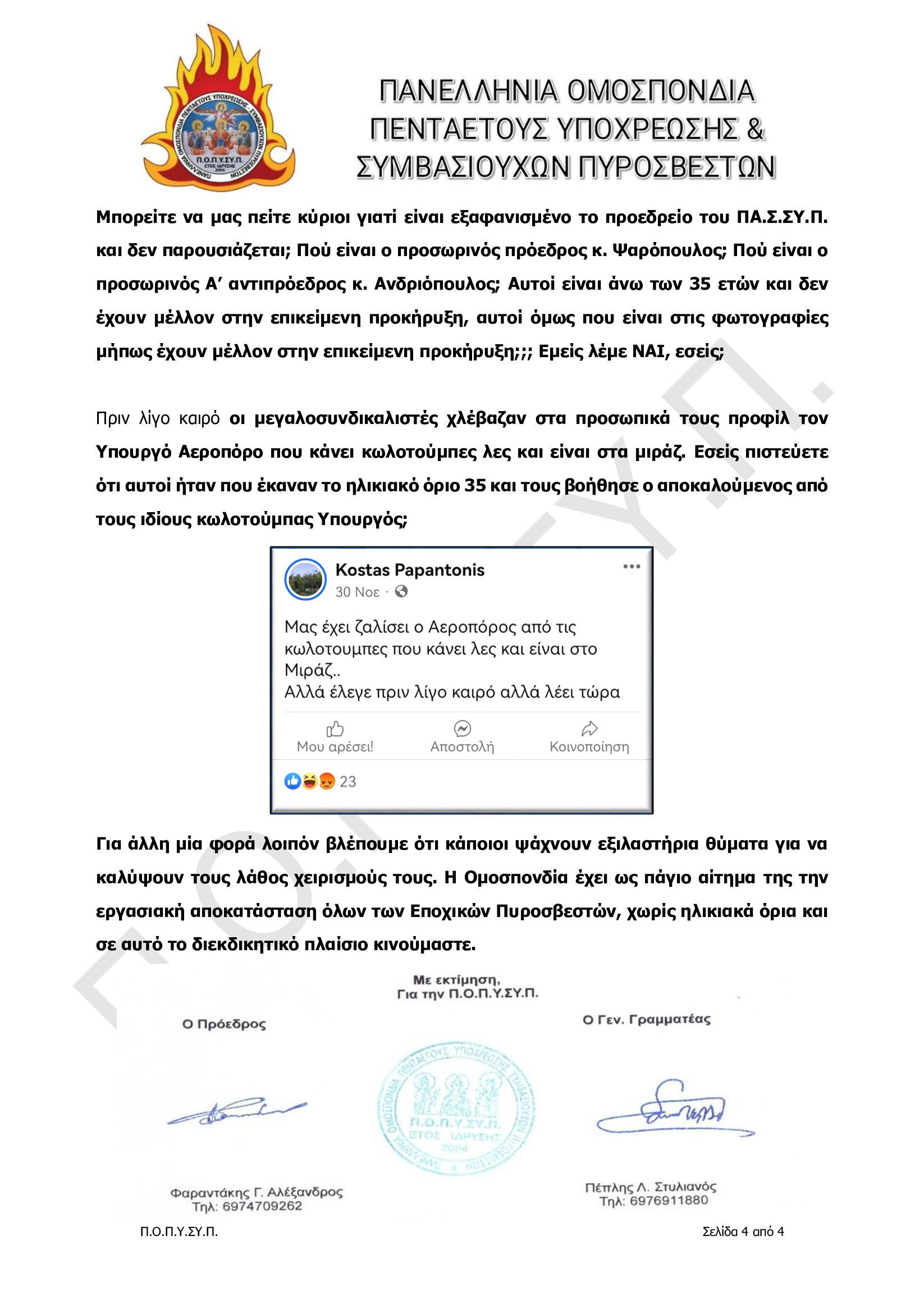 Πανελλήνια Ομοσπονδία Πενταετούς Υποχρέωσης & Συμβασιούχων Πυροσβεστών