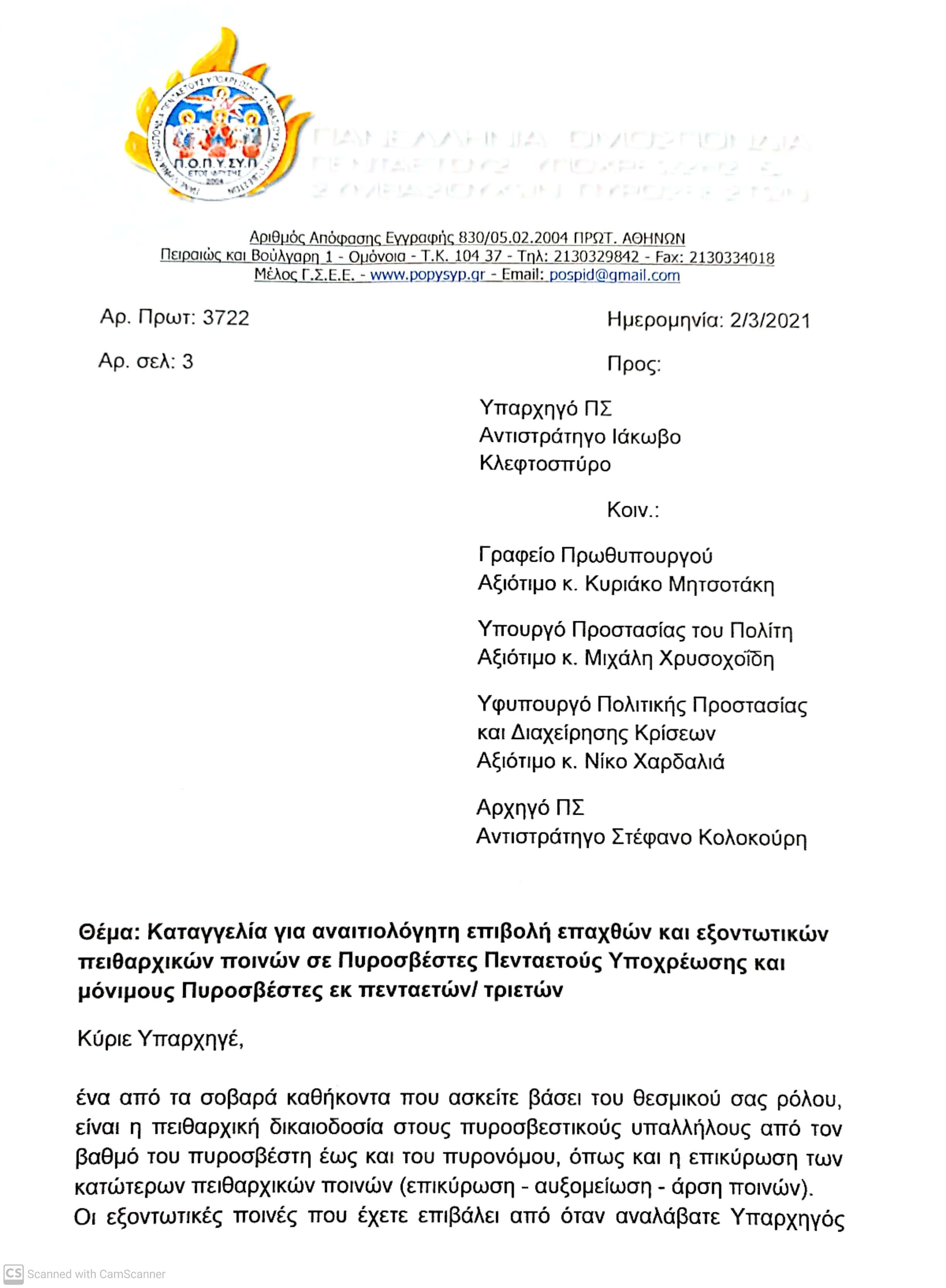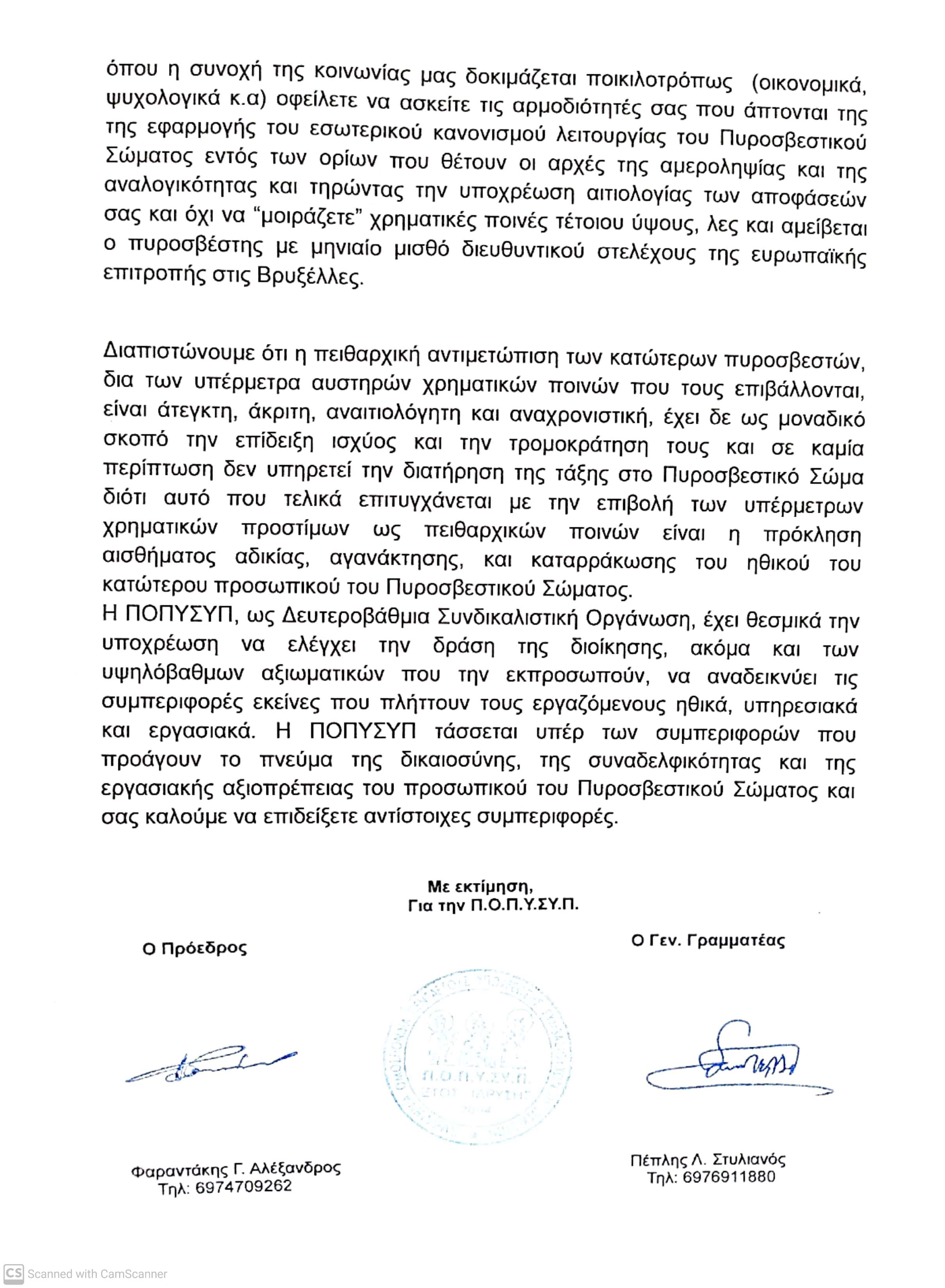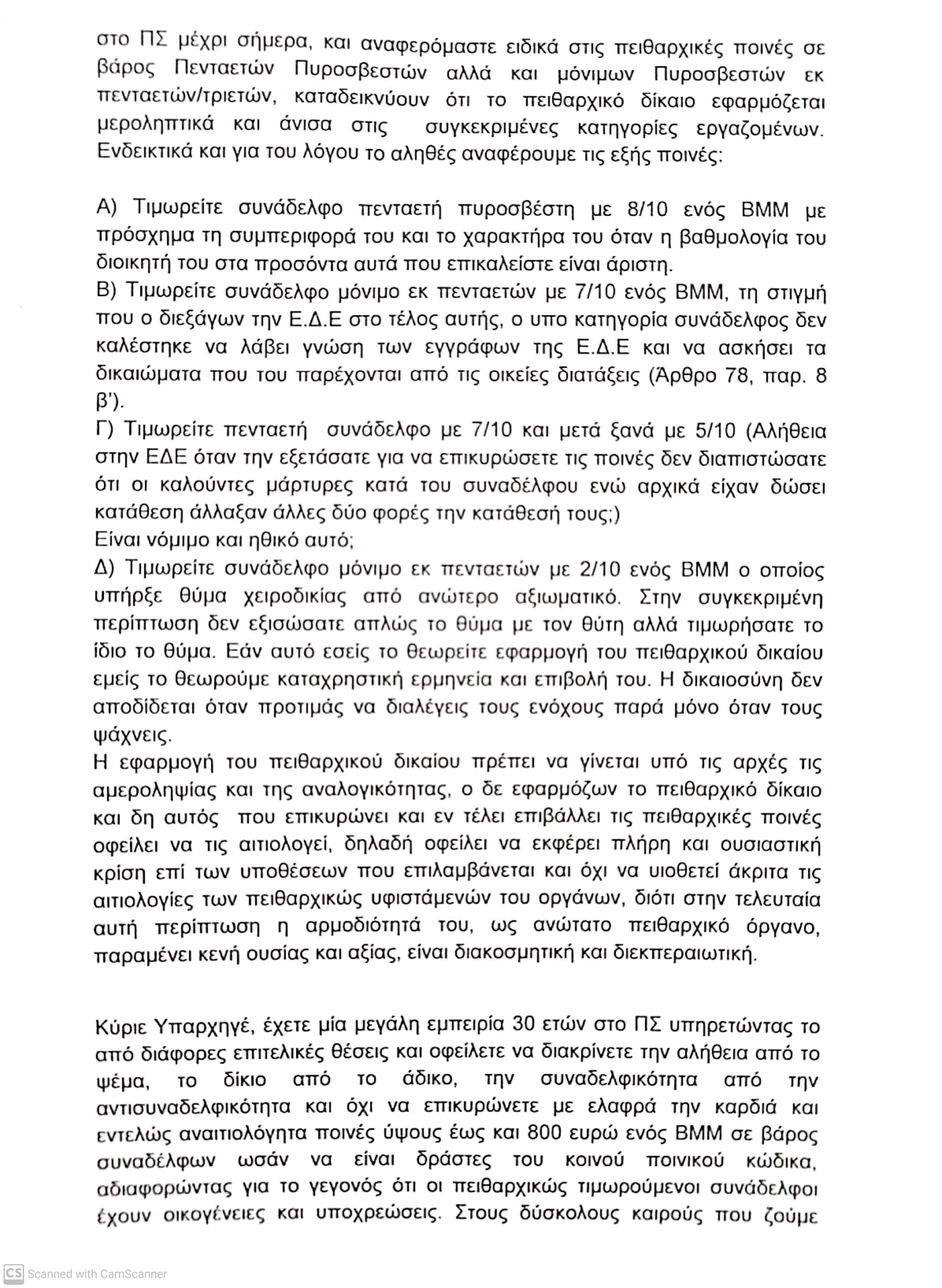 Καταγγελία για αναιτιολόγητη επιβολή επαχθών και εξοντωτικών πειθαρχικών ποινών σε Πυροσβέστες Πενταετούς Υποχρέωσης και μόνιμους Πυροσβέστες εκ πενταετών/ τριετών