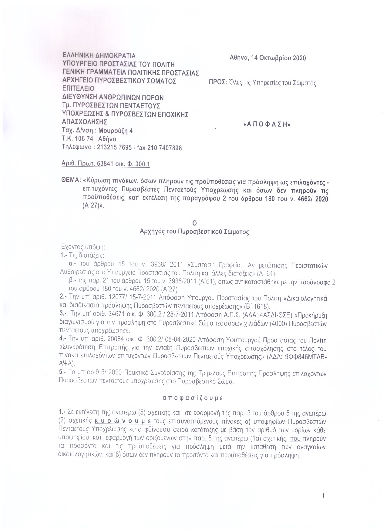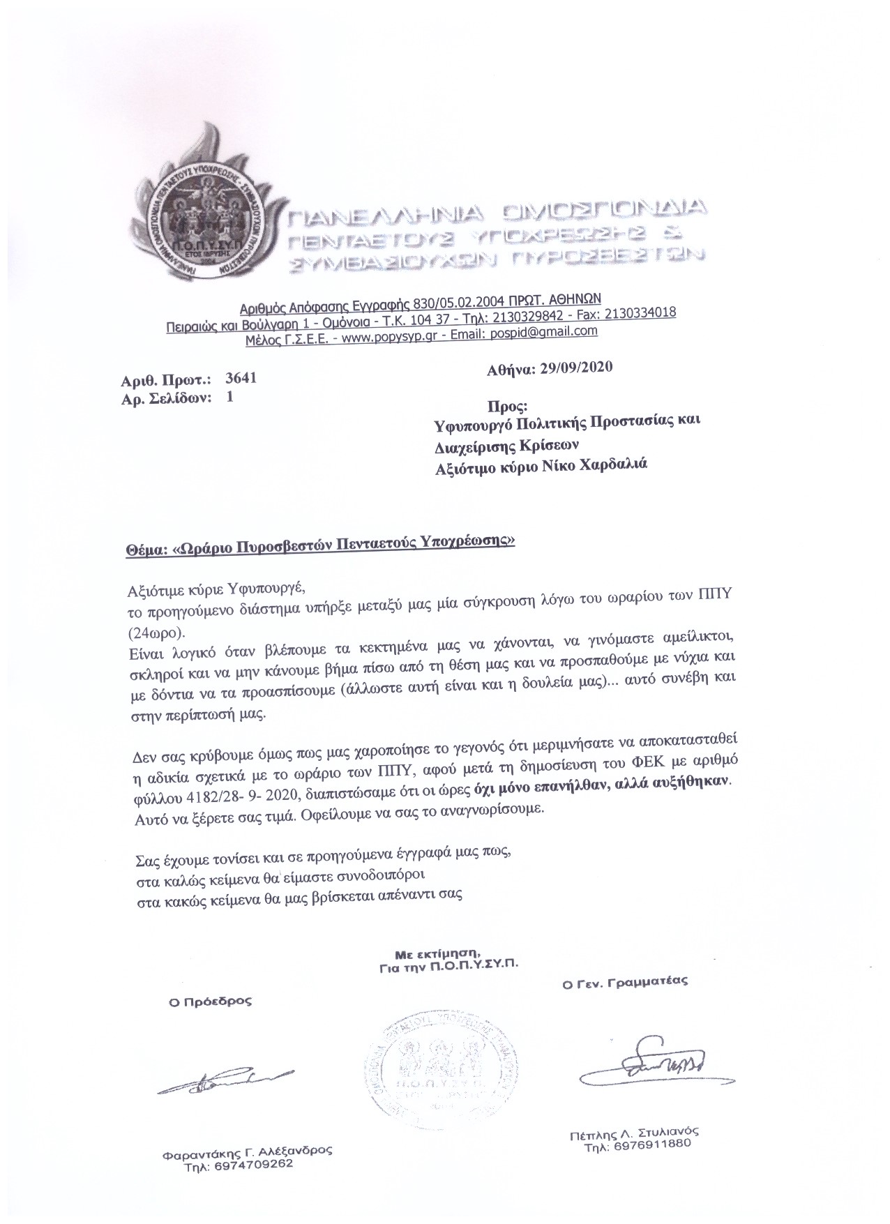 Επιστολή Σωματείου Πυροσβεστών Περιφέρειας Αττικής και Νήσων με θέμα: "Αποκατάσταση Αδικίας"