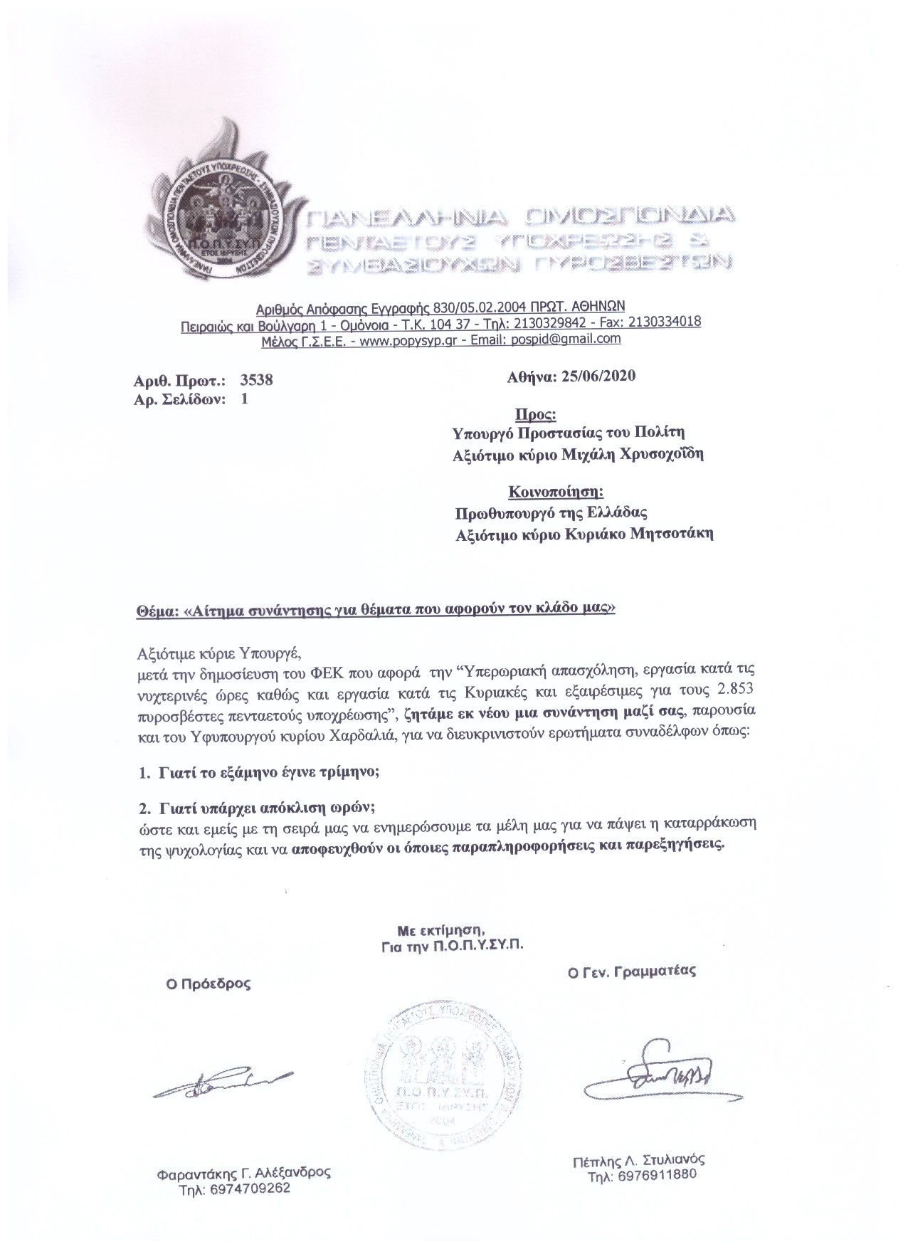 Αφορά την αναγνώριση της πλασματικής μάχιμης πενταετίας. Τους συναδέλφους που προσλήφθηκαν μετά το έτος 2011 στο Πυροσβεστικό Σώμα και συμπεριλαμβάνει και τους 3ετής – μονιμοποιηθέντες.