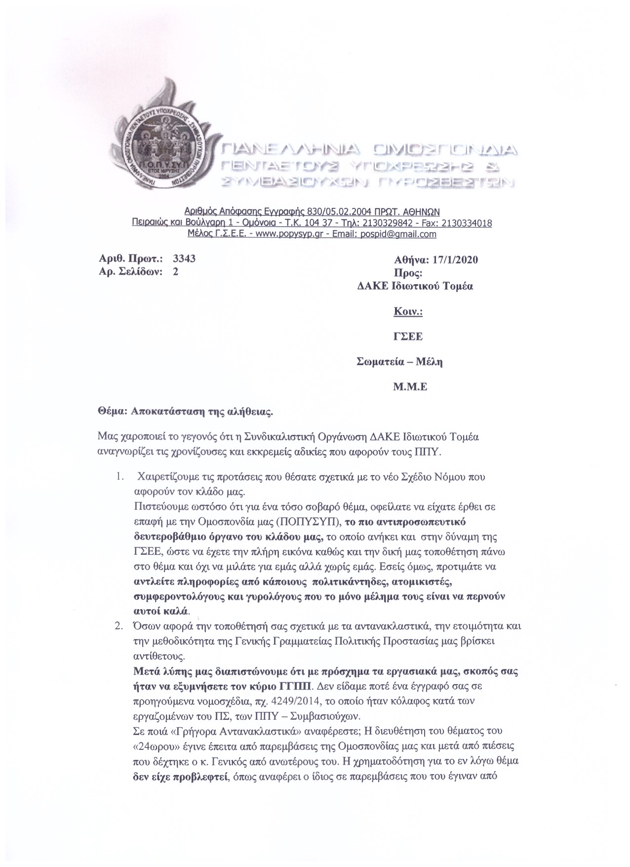 Προτάσεις ΠΟΠΥΣΥΠ για το Νομοσχέδιο