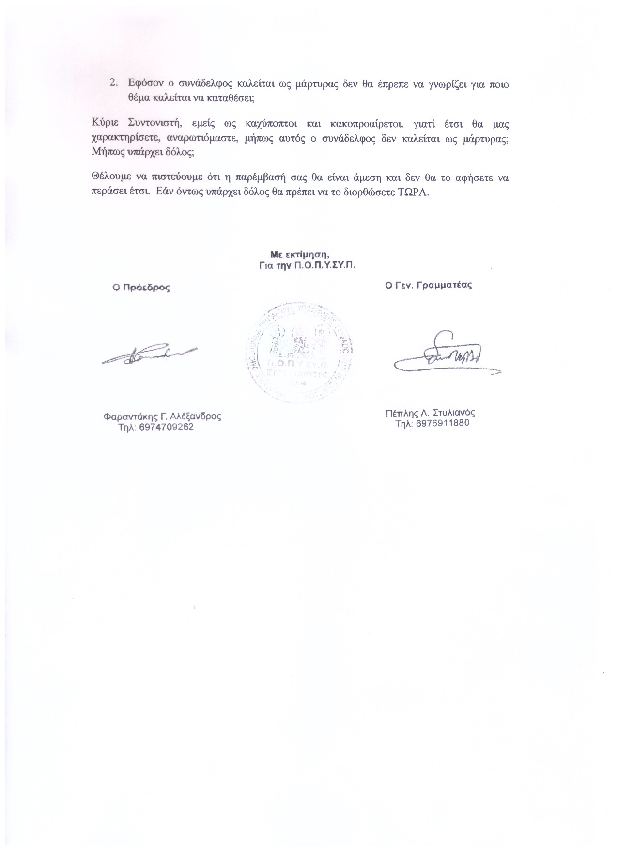 Ο Πρόεδρος Ο Γεν. Γραμματέας