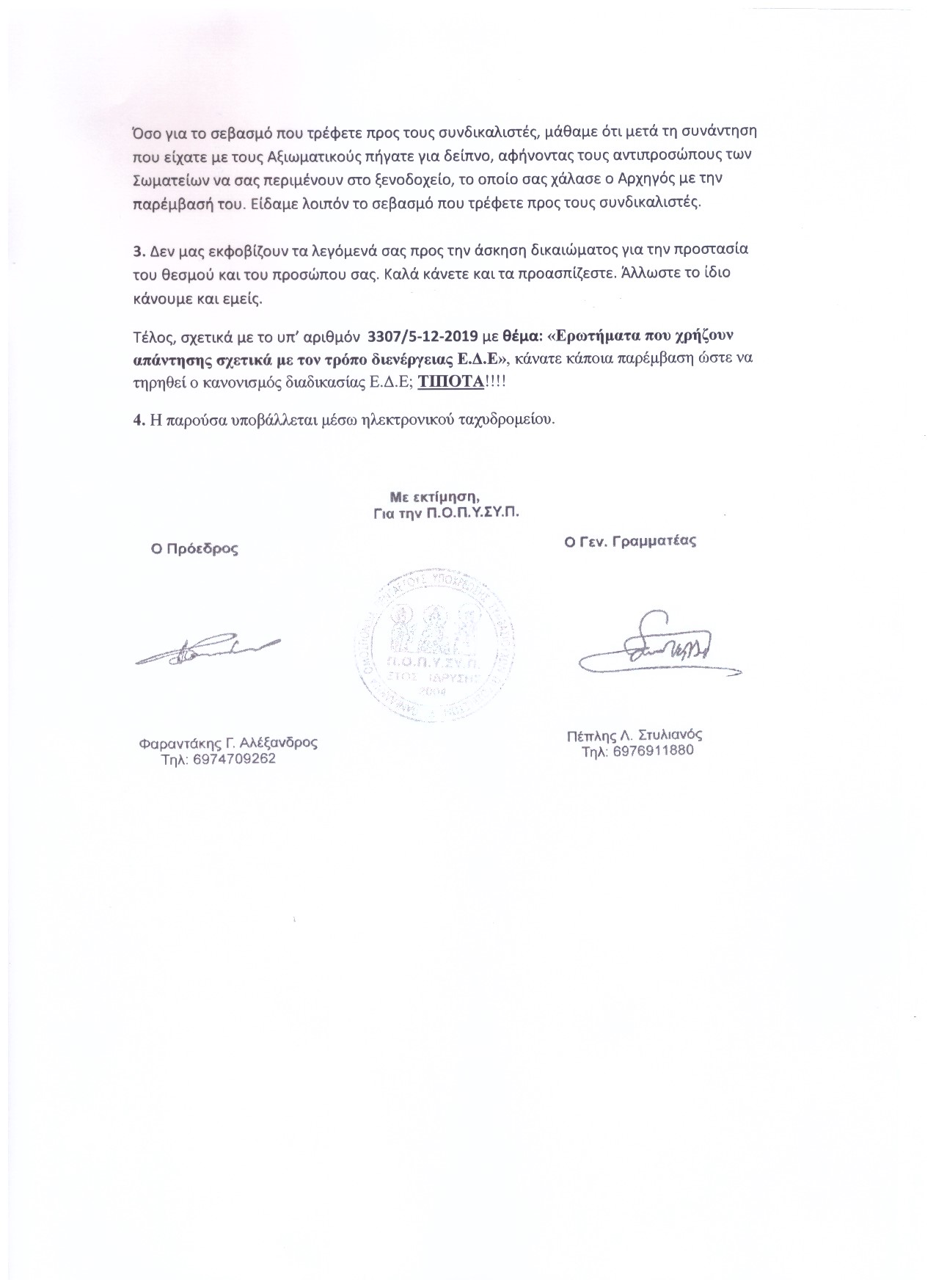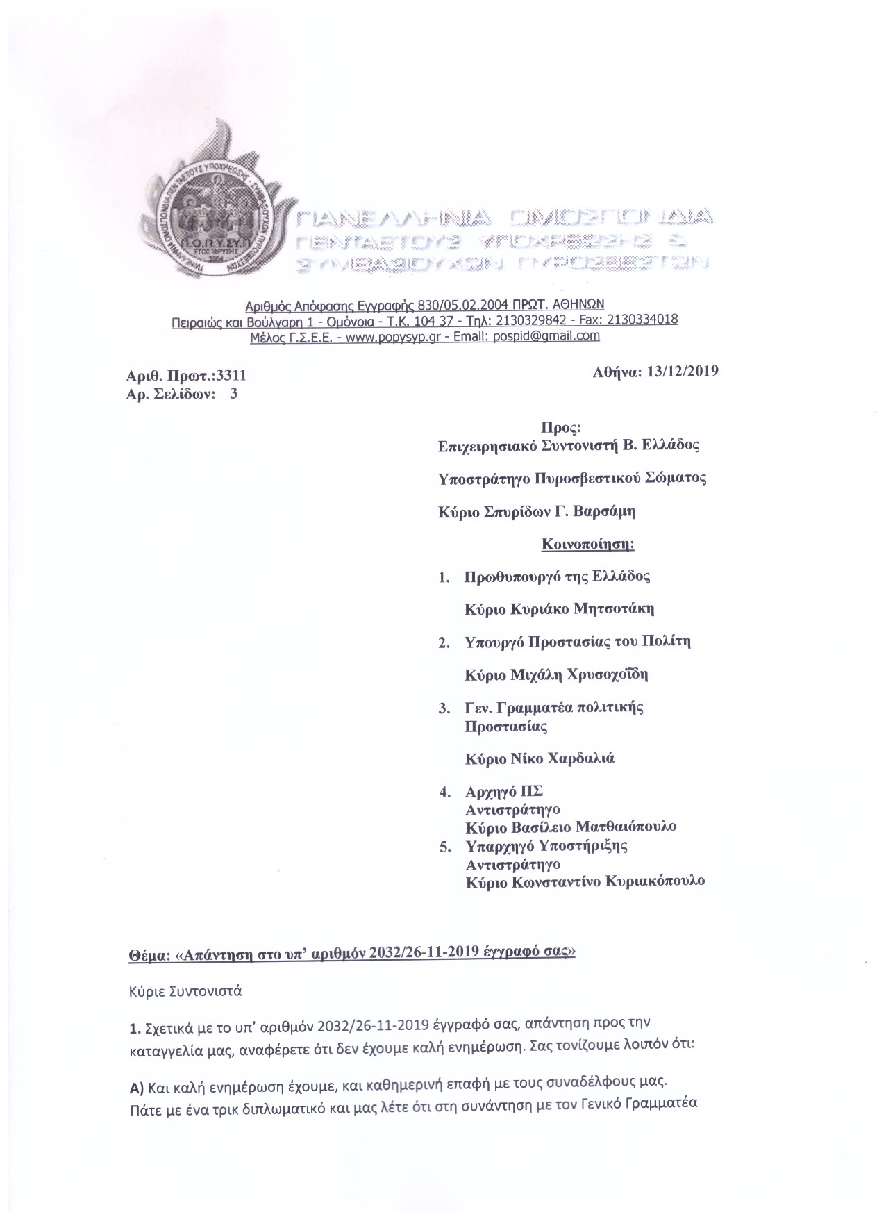 Αριθ. Πρωτ.:3302 Αθήνα:28/11/2019
