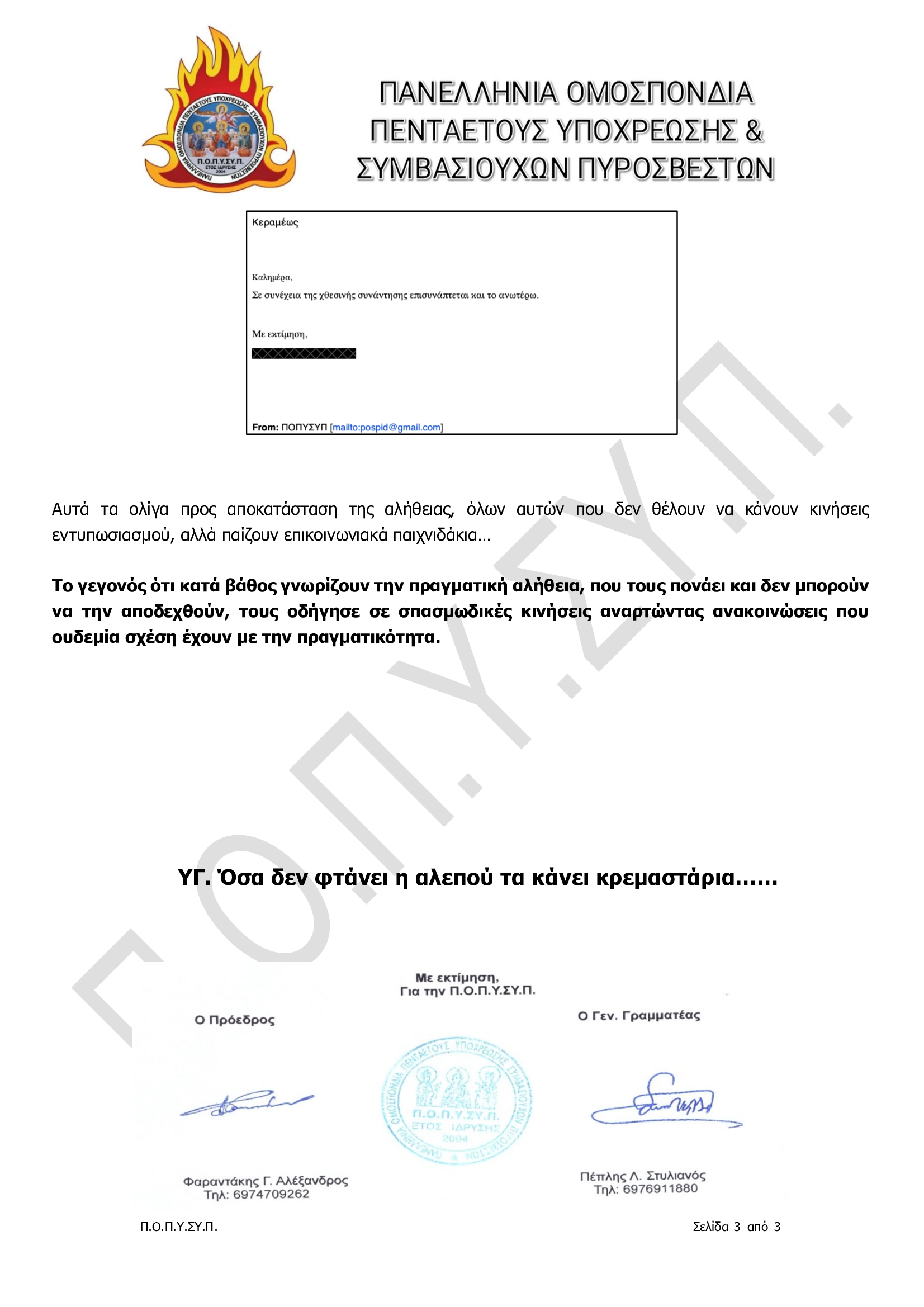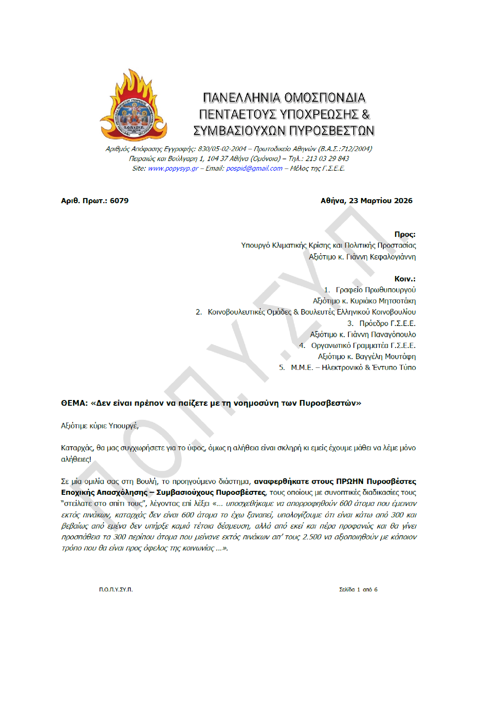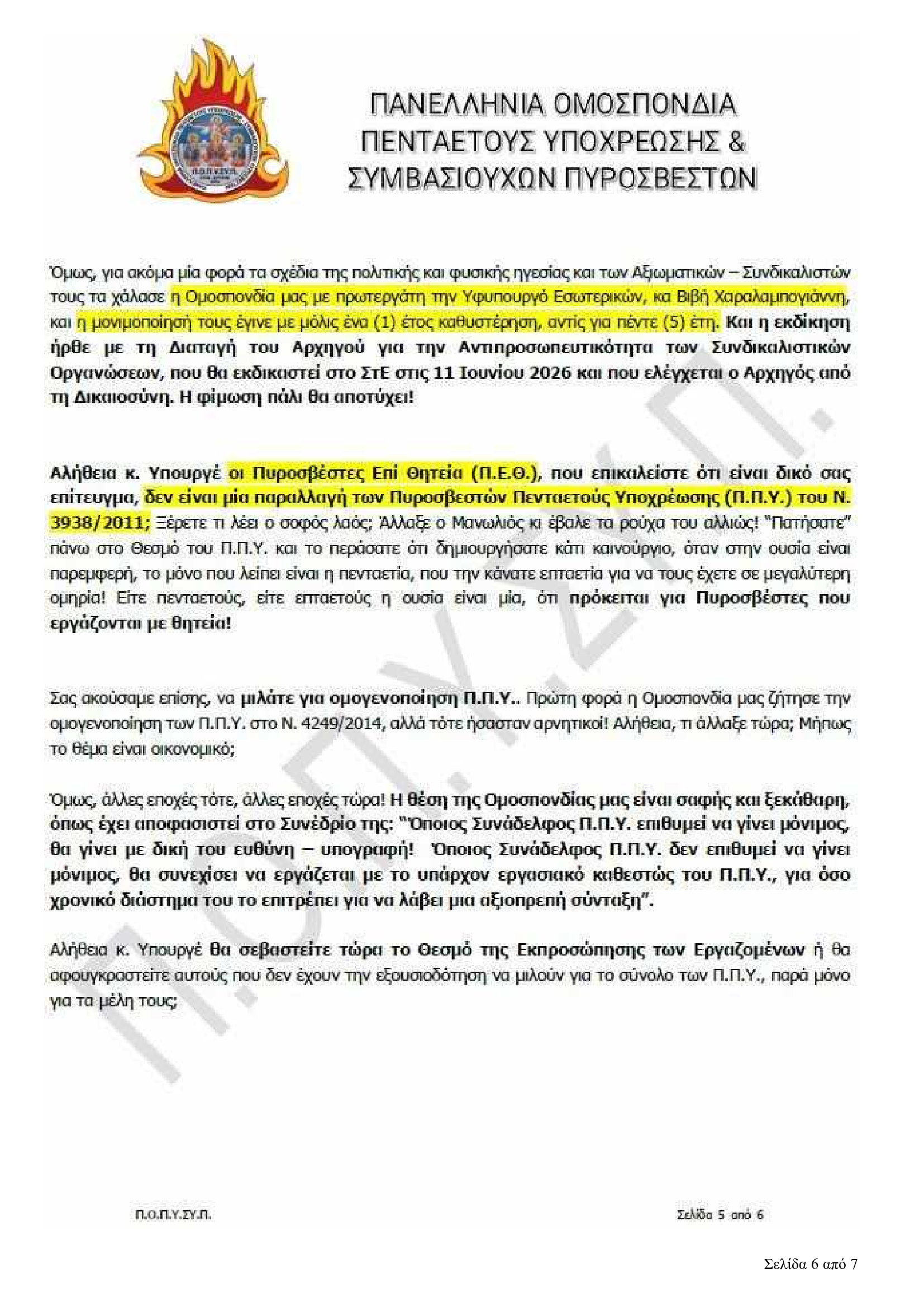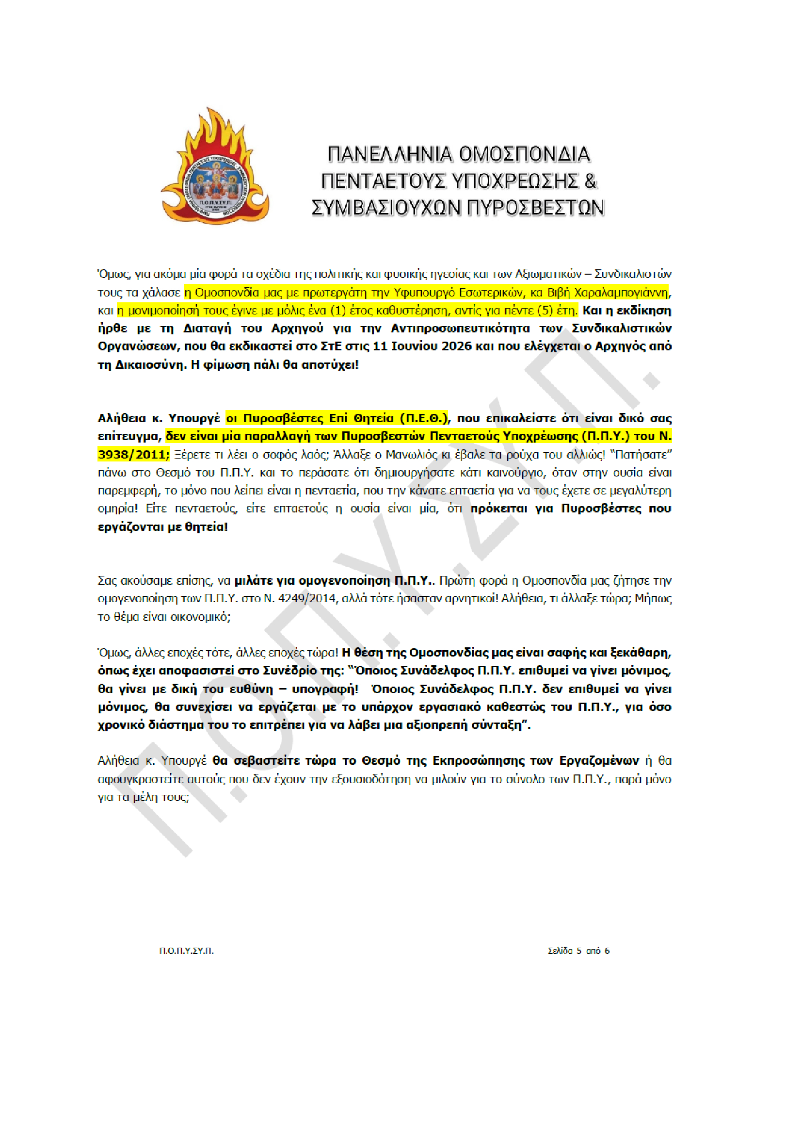 Πανελλήνια Ομοσπονδία Πενταετούς Υποχρέωσης & Συμβασιούχων Πυροσβεστών