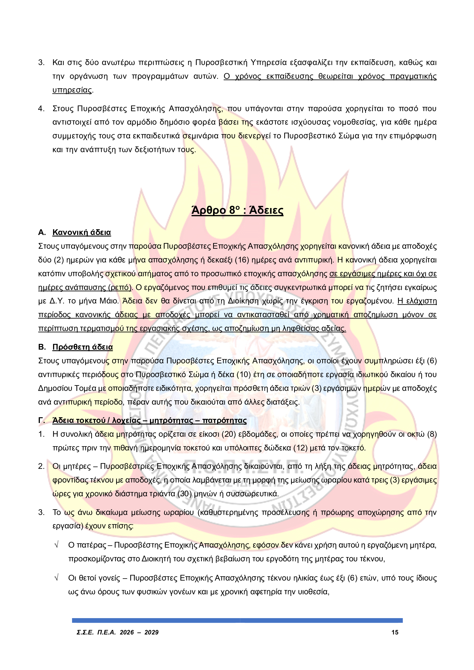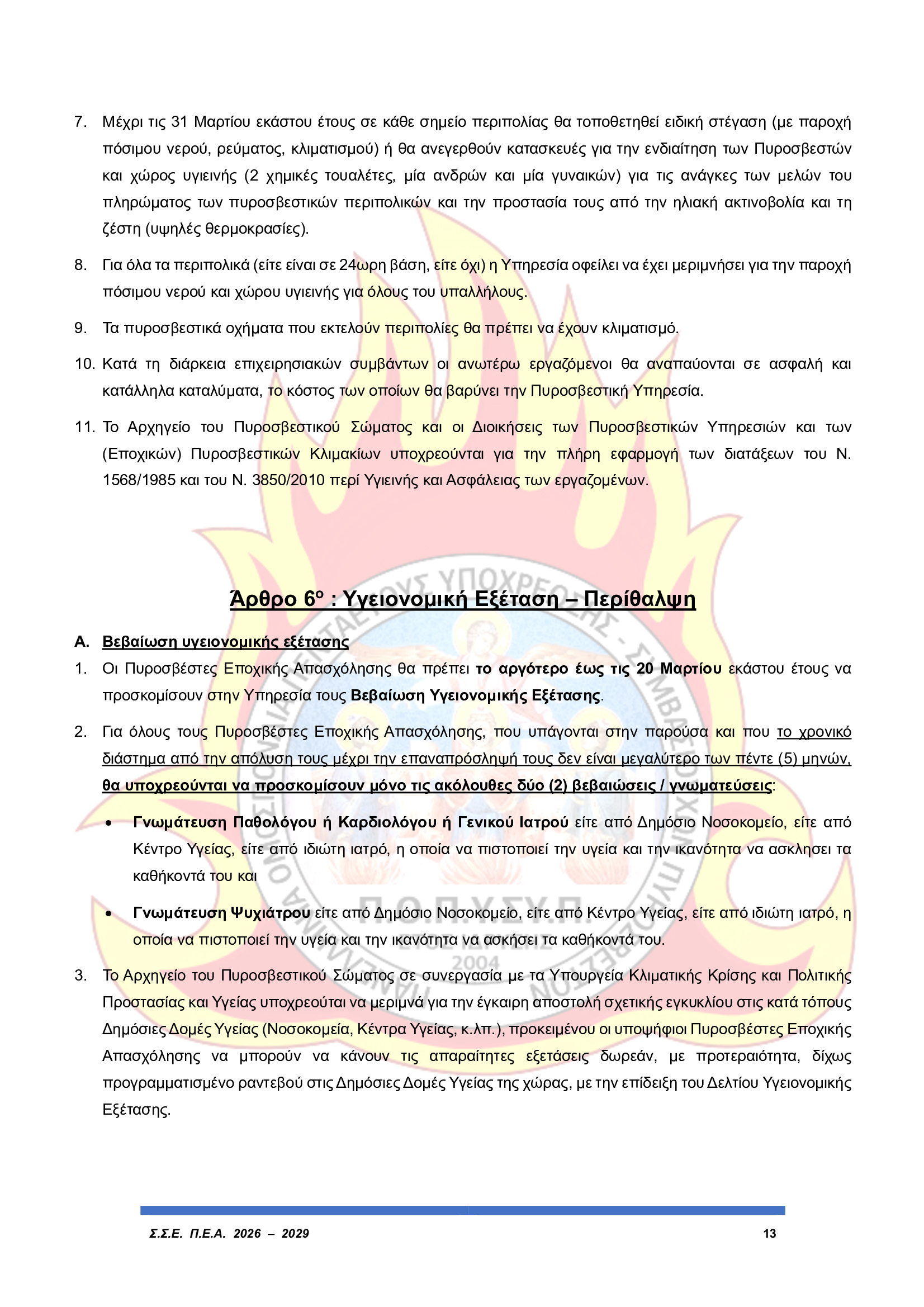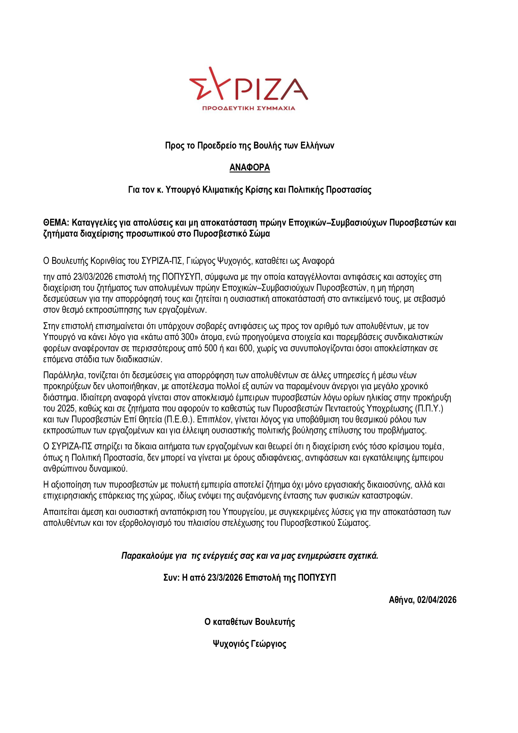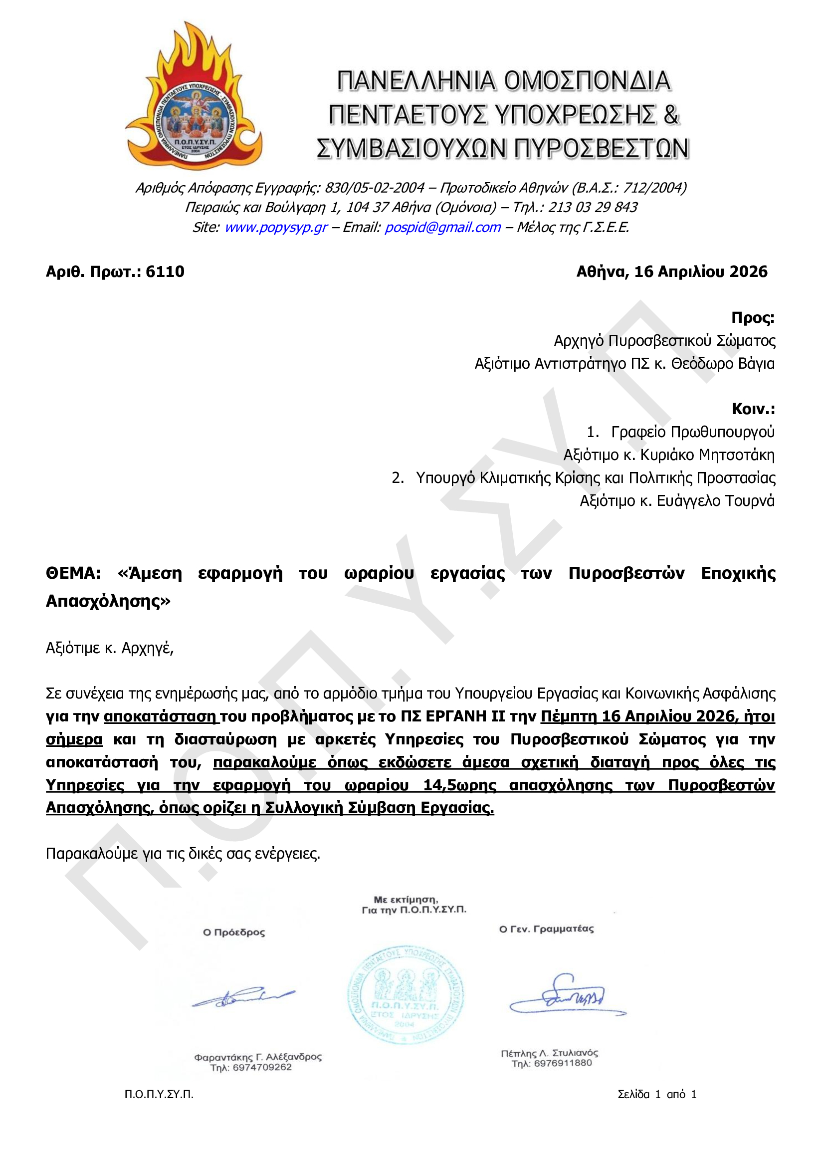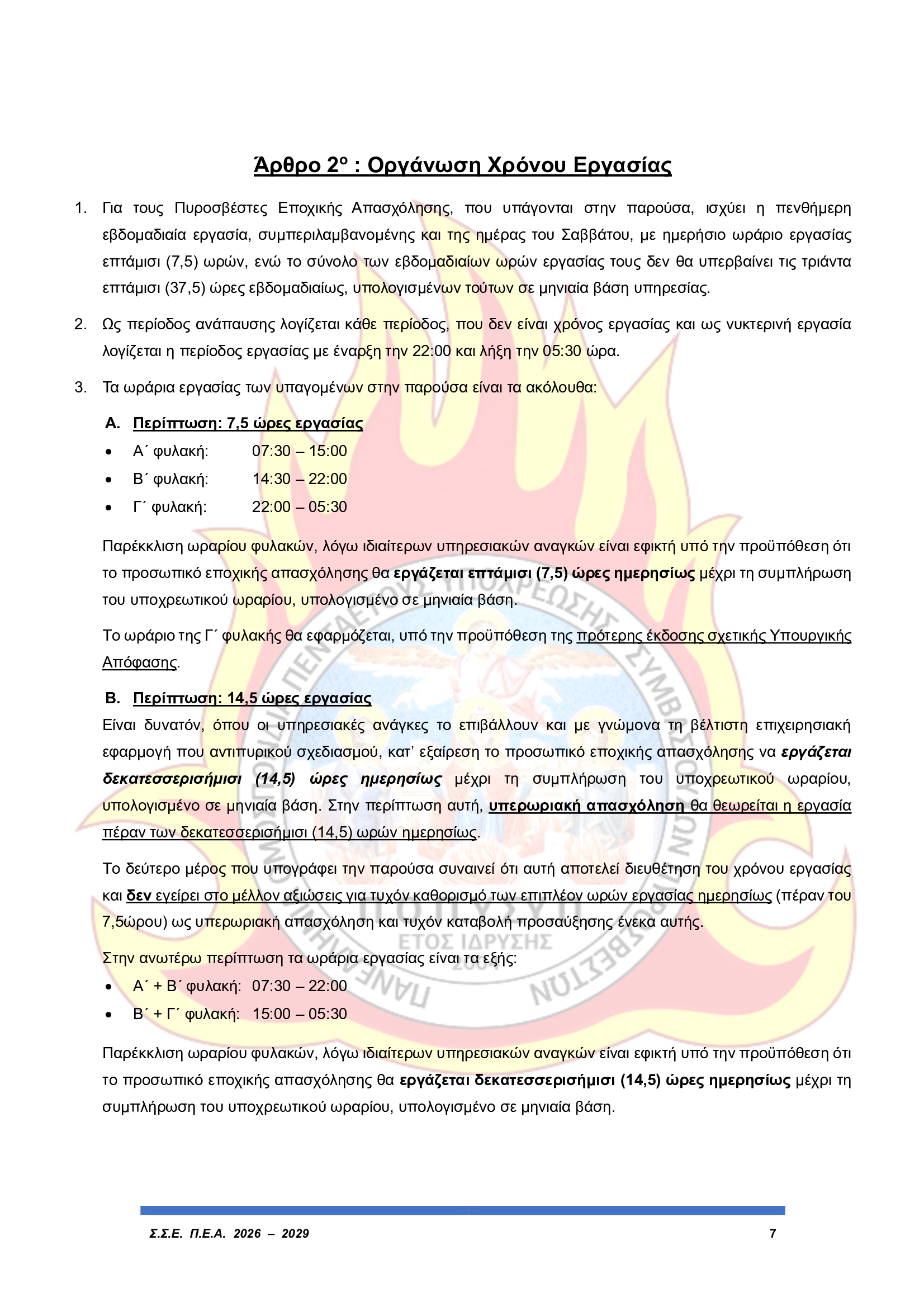 Άμεση εφαρμογή του ωραρίου εργασίας των Πυροσβεστών Εποχικής Απασχόλησης