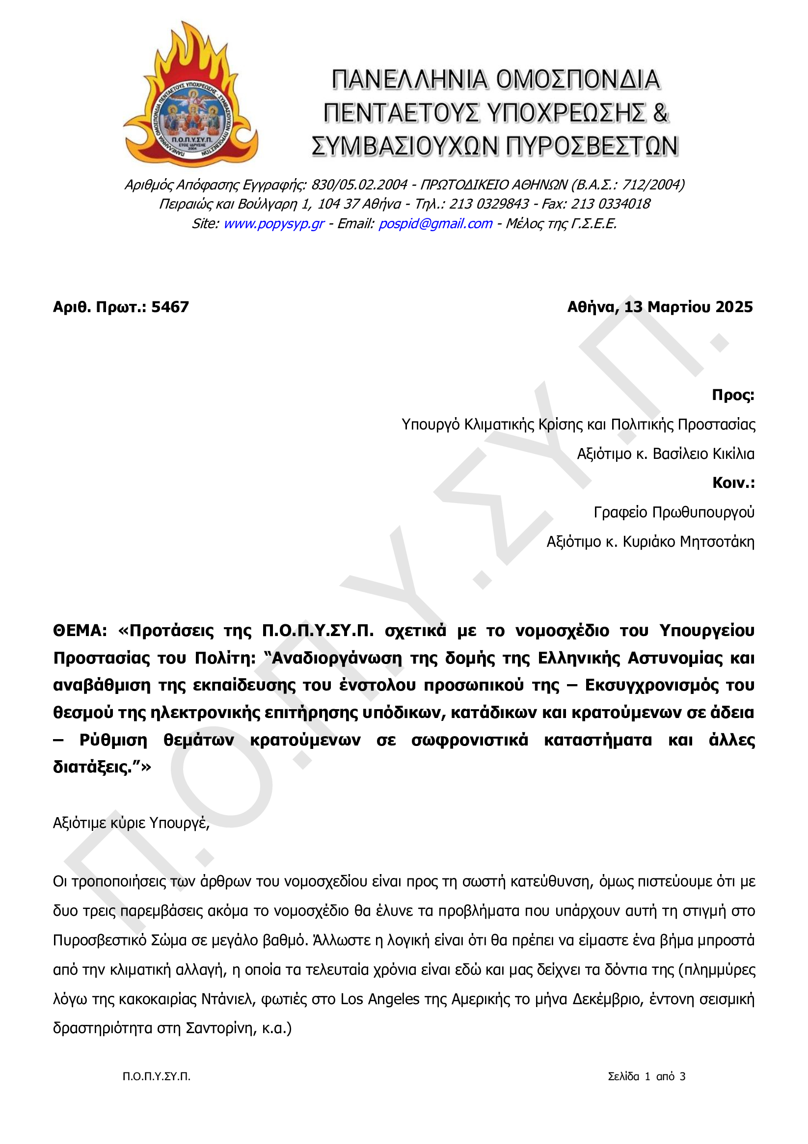 Στις 14 Μαρτίου 2025 ο Γενικός Γραμματέας της Π.Ο.Π.Υ.ΣΥ.Π., κ. Πέπλης Στυλιανός, συμμετείχε στη συνεδρίαση της Διαρκούς Επιτροπής Δημόσιας Διοίκησης, Δημόσιας Τάξης και Δικαιοσύνης και της Ειδικής Μόνιμης Επιτροπής Σωφρονιστικού Συστήματος και λοιπών Δομών Εγκλεισμού Κρατουμένων, προκειμένου να εκθέσει εν συντομία τις απόψεις της Ομοσπονδίας μας αναφορικά με τα άρθρα που αφορούν το Πυροσβεστικό Σώμα, στο σχέδιο νόμου του Υπουργείου Προστασίας του Πολίτη με τίτλο «Αναδιοργάνωση της δομής της Ελληνικής Αστυνομίας και αναβάθμιση της εκπαίδευσης του ένστολου προσωπικού της – Εκσυγχρονισμός του θεσμού της ηλεκτρονικής επιτήρησης υπόδικων, κατάδικων και κρατούμενων σε άδεια – Ρύθμιση θεμάτων κρατούμενων σε σωφρονιστικά καταστήματα και άλλες διατάξεις».