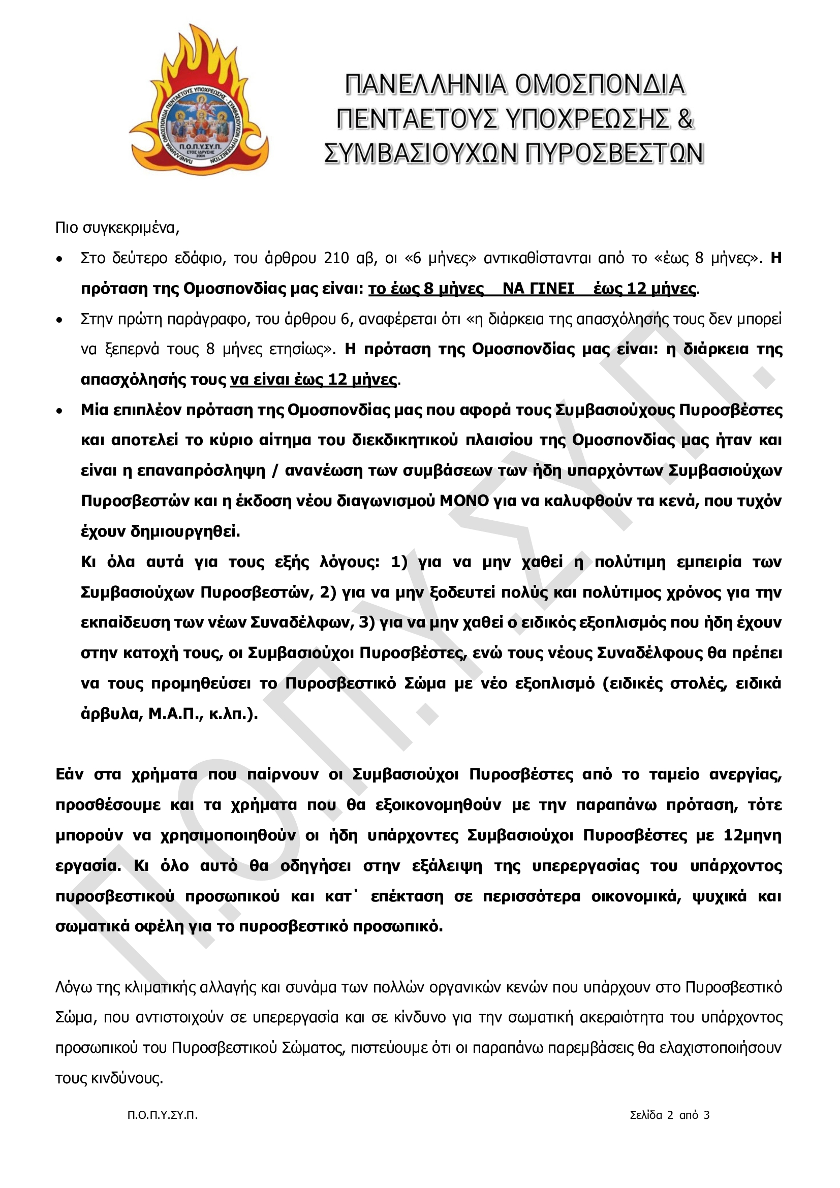 Προτάσεις της Π.Ο.Π.Υ.ΣΥ.Π. για τη Διαρκή Επιτροπή Δημόσιας Διοίκησης, Δημόσιας Τάξης και Δικαιοσύνης