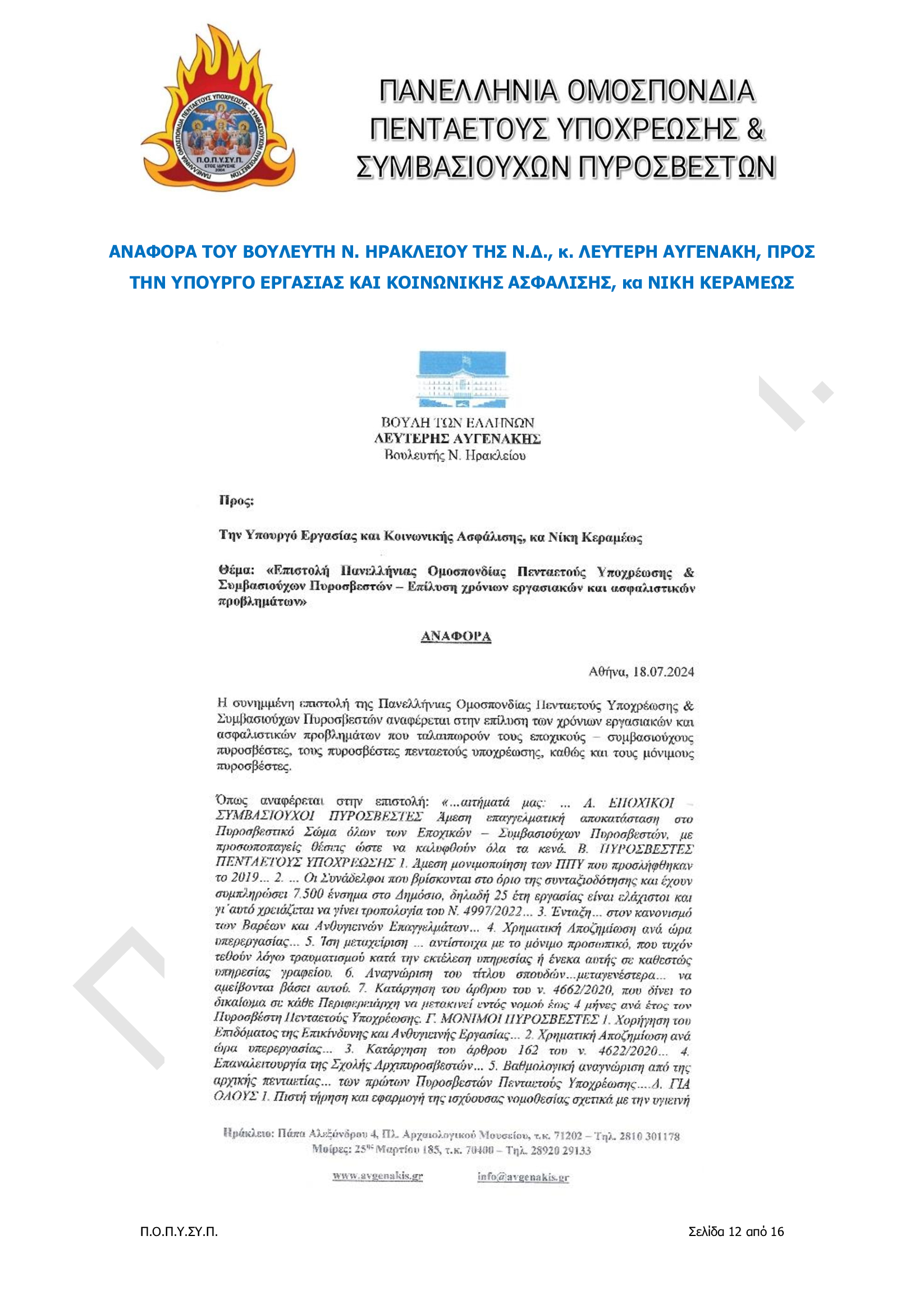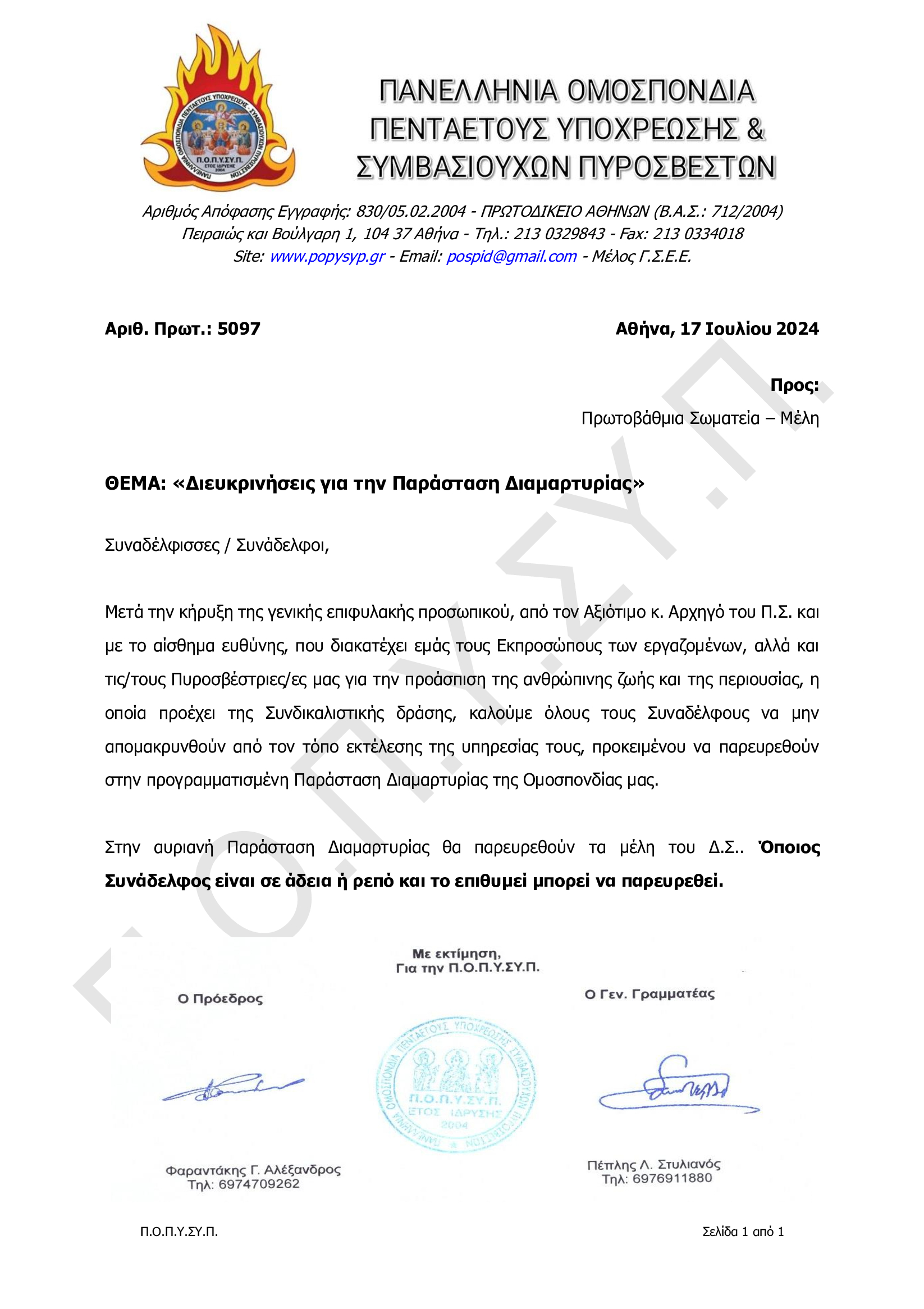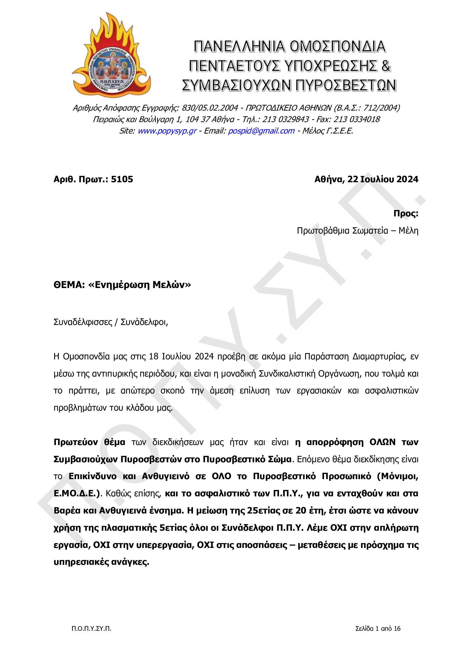 Συγκέντρωση Διαμαρτυρίας την Πέμπτη 18 Ιουλίου 2024, στο Σύνταγμα στις 11.00 π.μ.