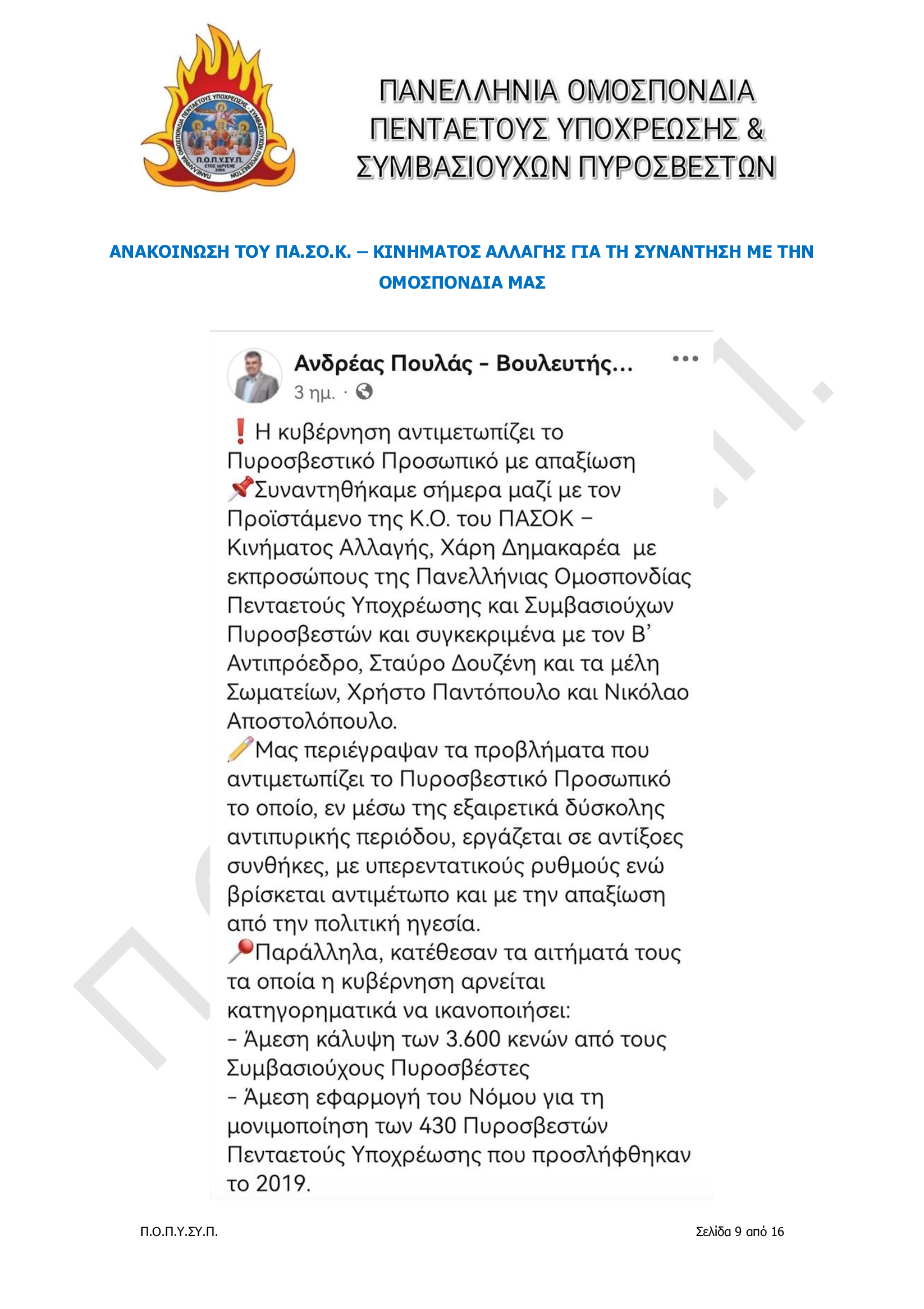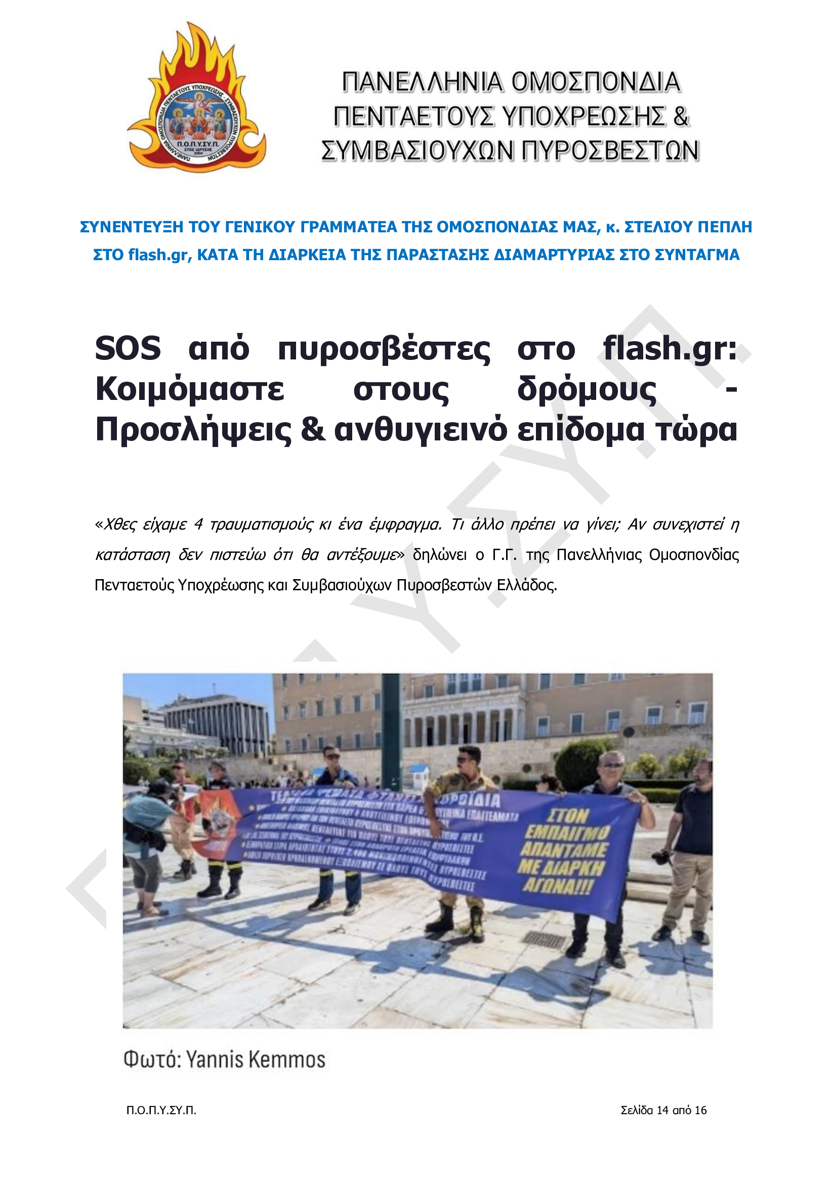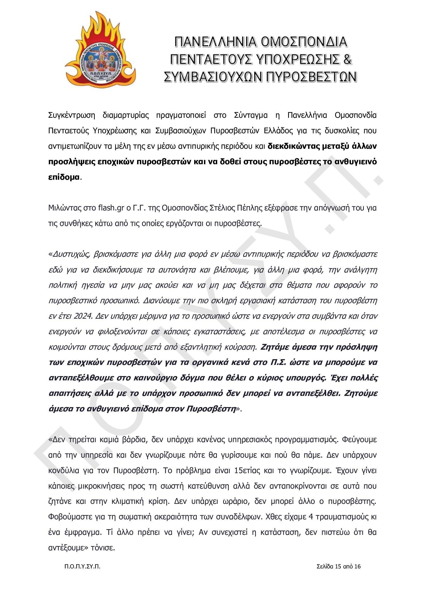 Πανελλήνια Ομοσπονδία Πενταετούς Υποχρέωσης & Συμβασιούχων Πυροσβεστών