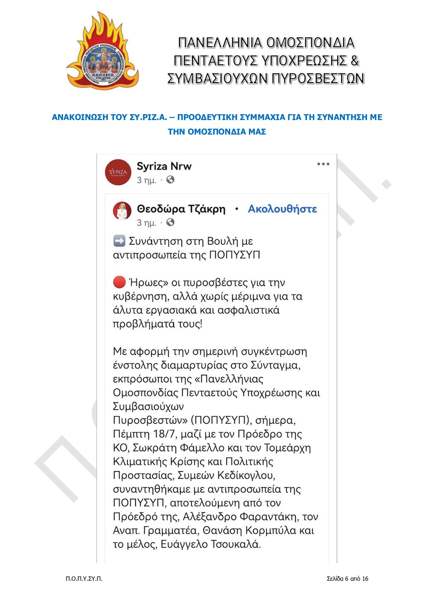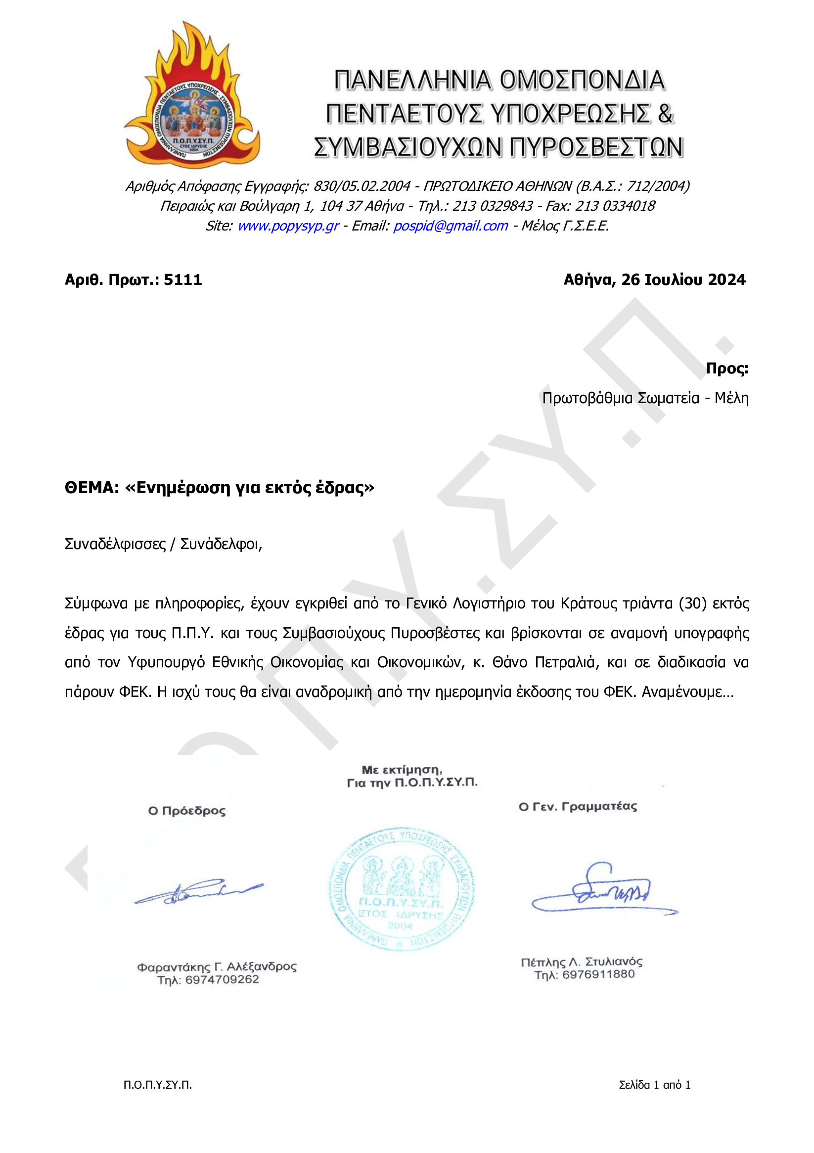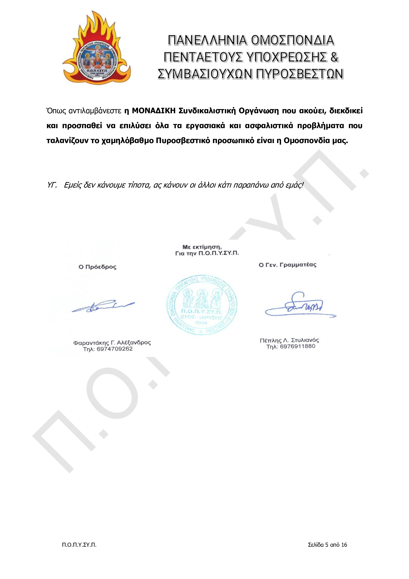 Πανελλήνια Ομοσπονδία Πενταετούς Υποχρέωσης & Συμβασιούχων Πυροσβεστών