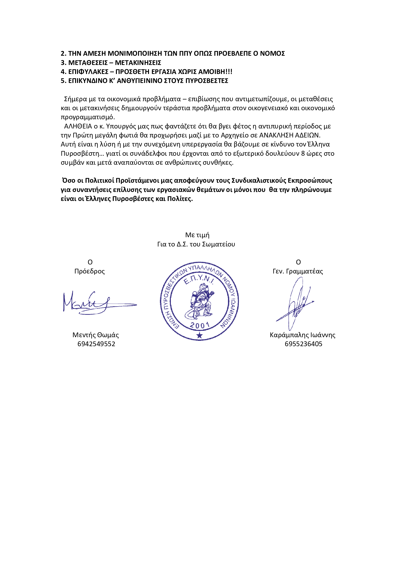 Αδιαφορία των Πολιτικών Προϊσταμένων μας για συνάντηση επίλυσης των εργασιακών προβλημάτων των Πυροσβεστών