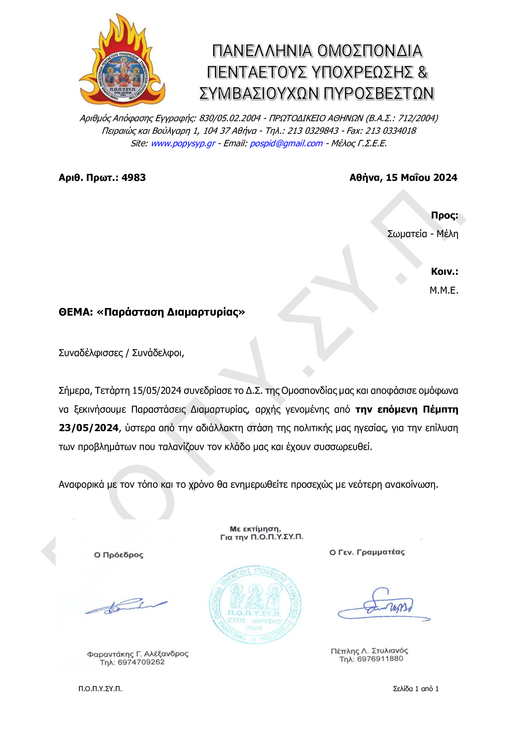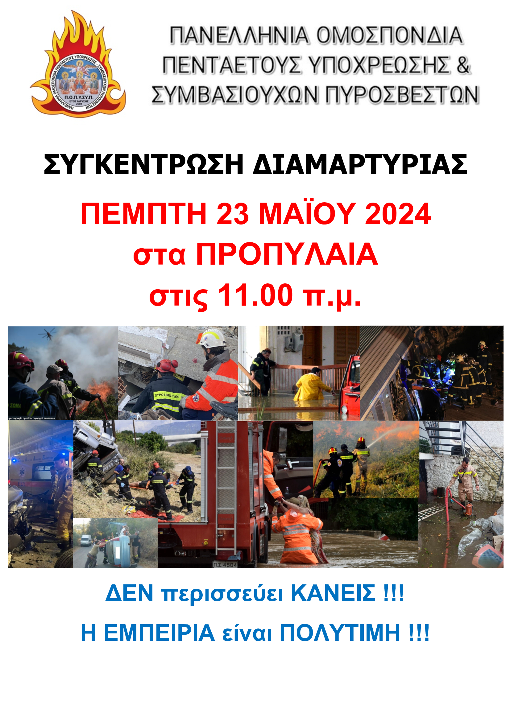 Συγκέντρωση διαμαρτυρίας την Πέμπτη 23/05/2024, στα Προπύλαια, στις 11.00 π.μ.