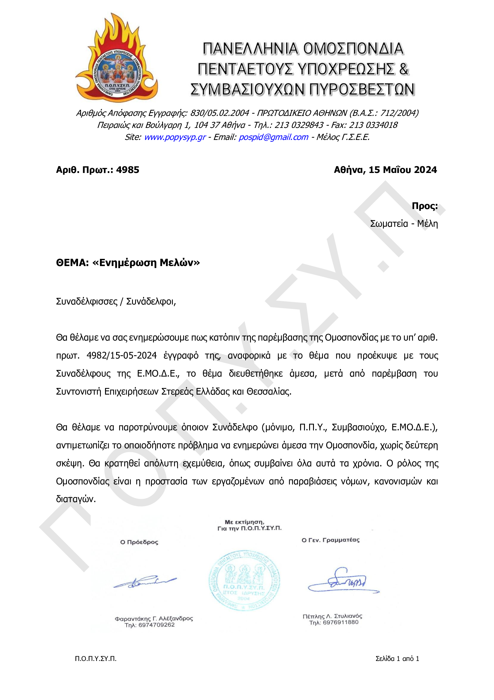 Πανελλήνια Ομοσπονδία Πενταετούς Υποχρέωσης & Συμβασιούχων Πυροσβεστών