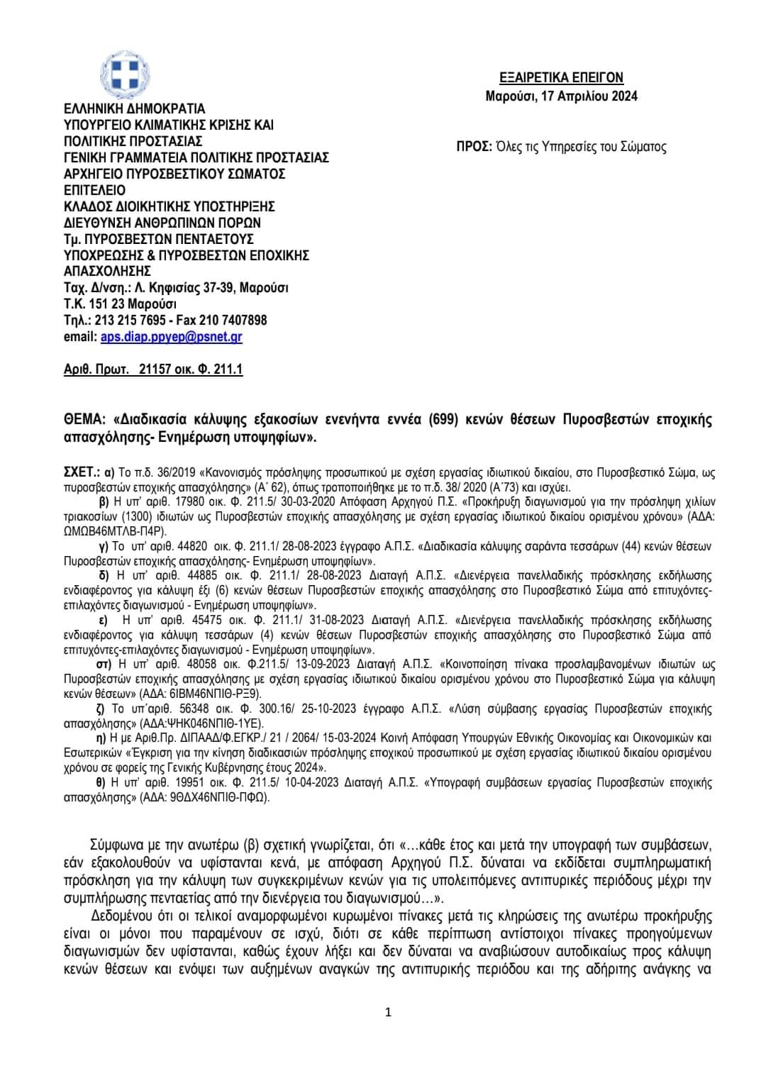 Επιτυχόντες - Εισακτέοι στο διαγωνισμό Πρόσληψης εξακοσίων πενήντα (650) Πυροσβεστών Δασικών Επιχειρήσεων (Ε.ΜΟ.Δ.Ε.)