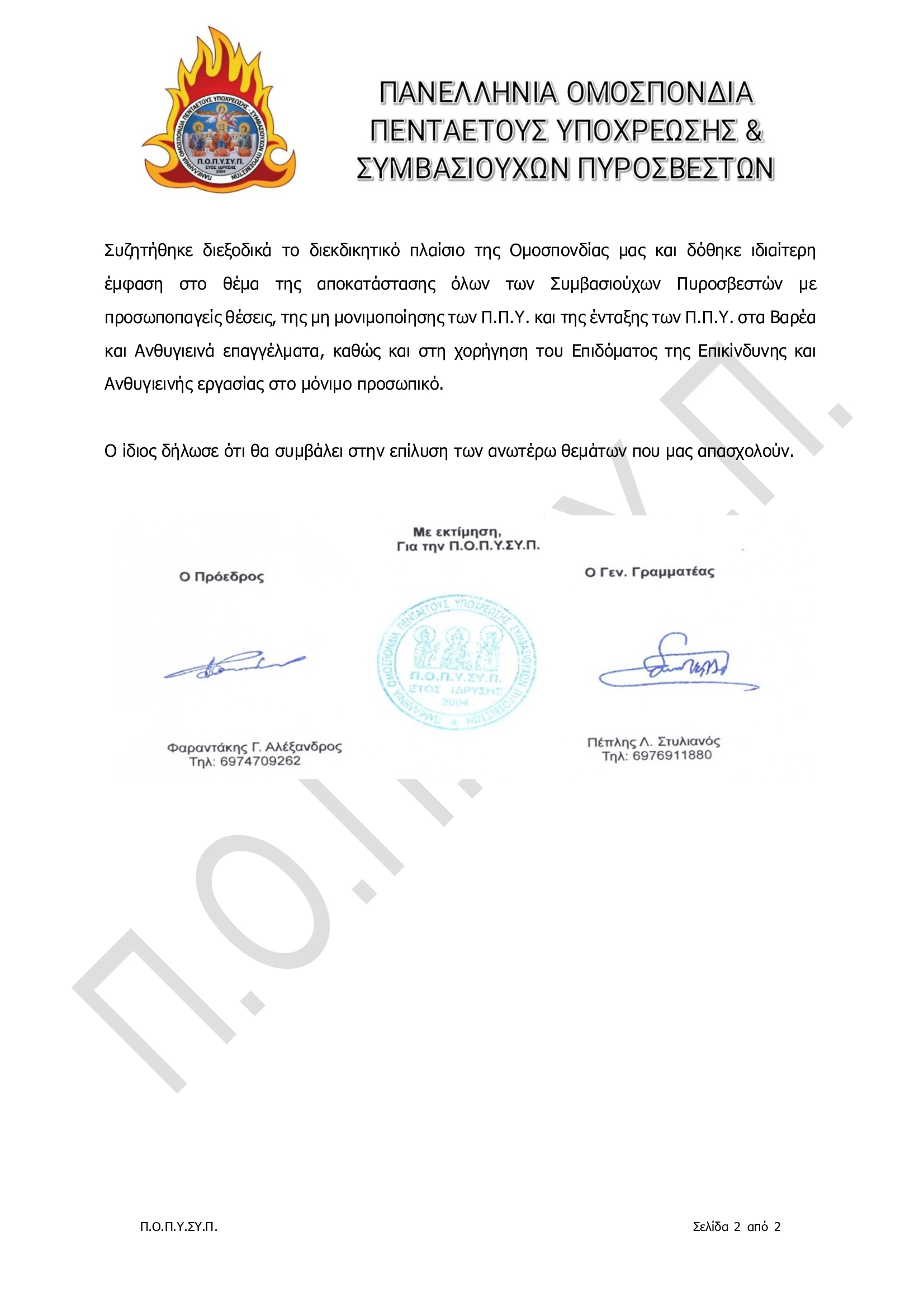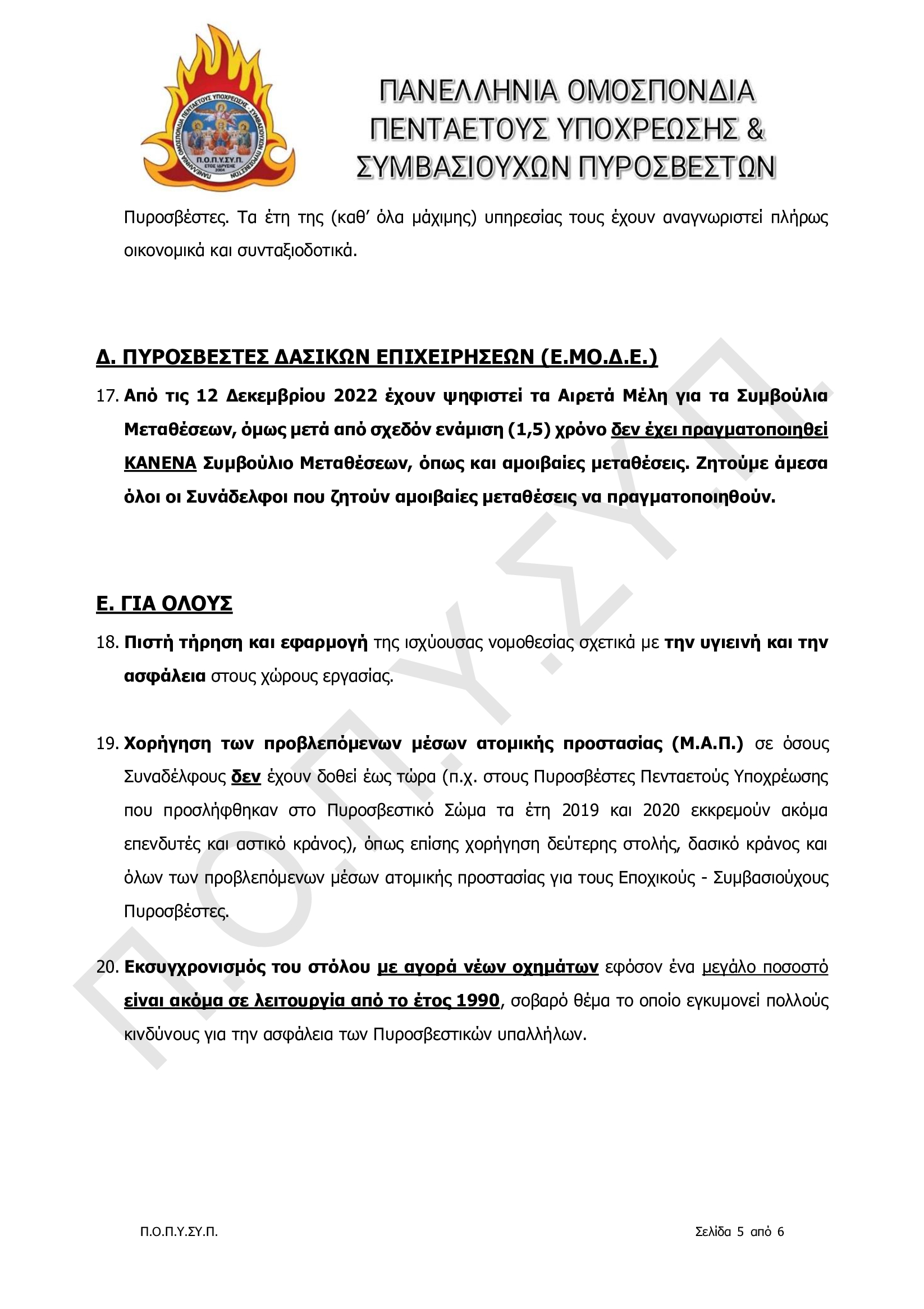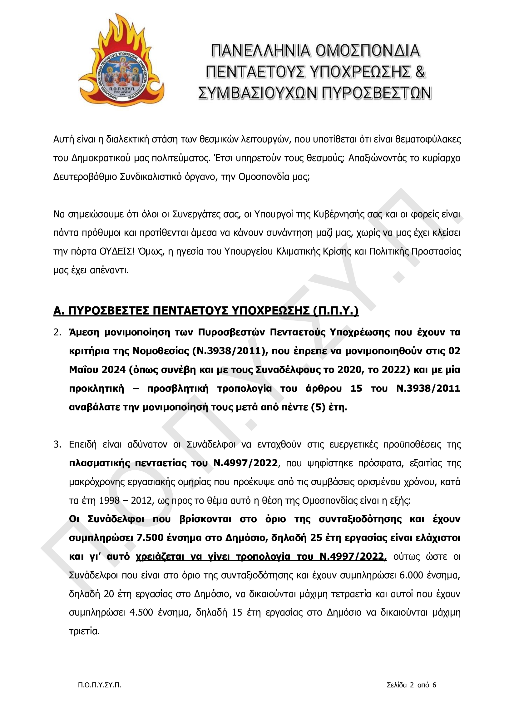 Πανελλήνια Ομοσπονδία Πενταετούς Υποχρέωσης & Συμβασιούχων Πυροσβεστών