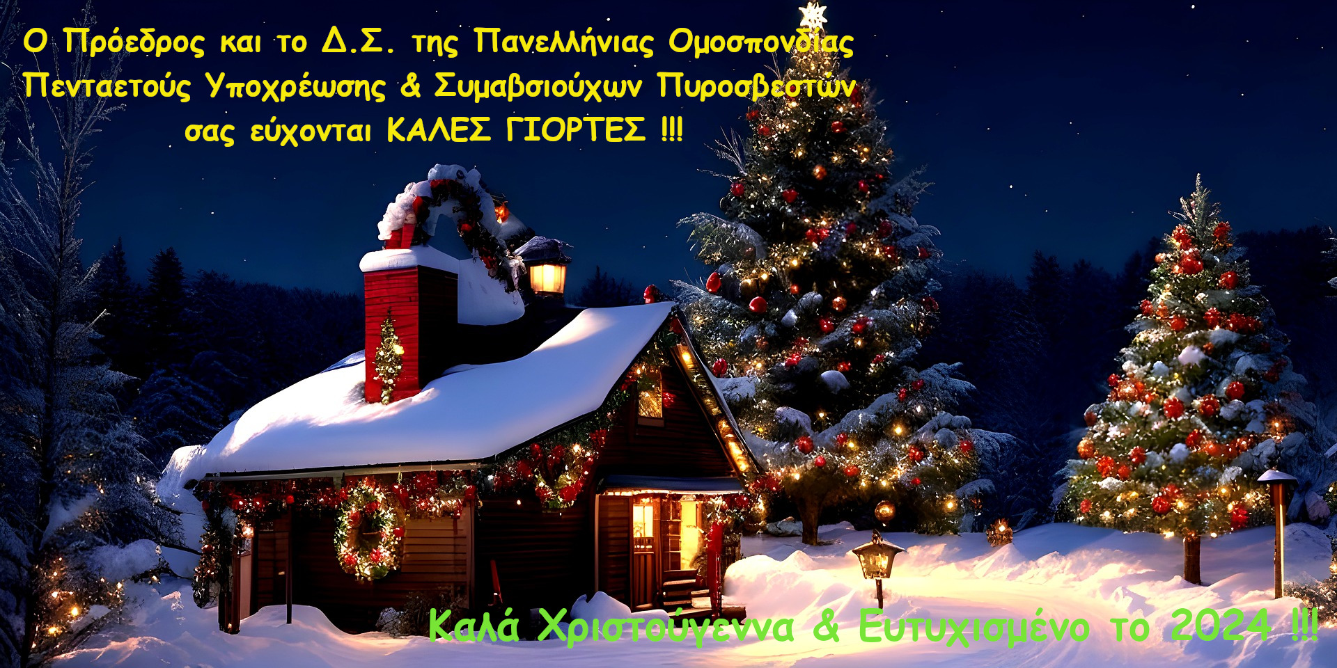 Ο Πρόεδρος και το Δ.Σ. της Πανελλήνιας Ομοσπονδίας Πενταετούς Υποχρέωσης και Συμβασιούχων Πυροσβεστών σας εύχονται Καλές Γιορτές !
