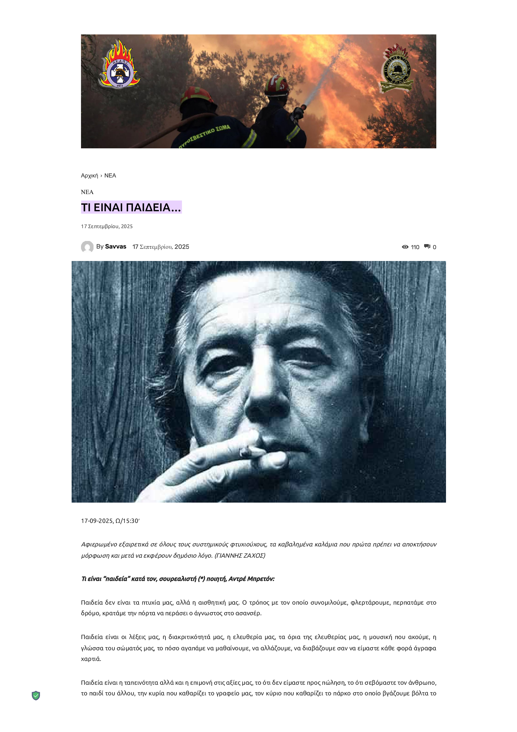 Άρθρο του Γιάννη Ζάχου, Αντιστράτηγου Π.Σ. ε.α