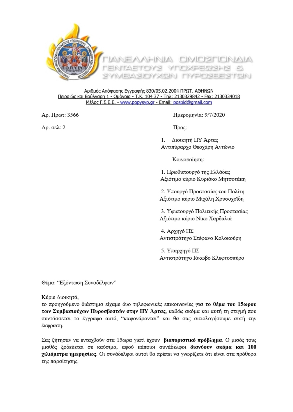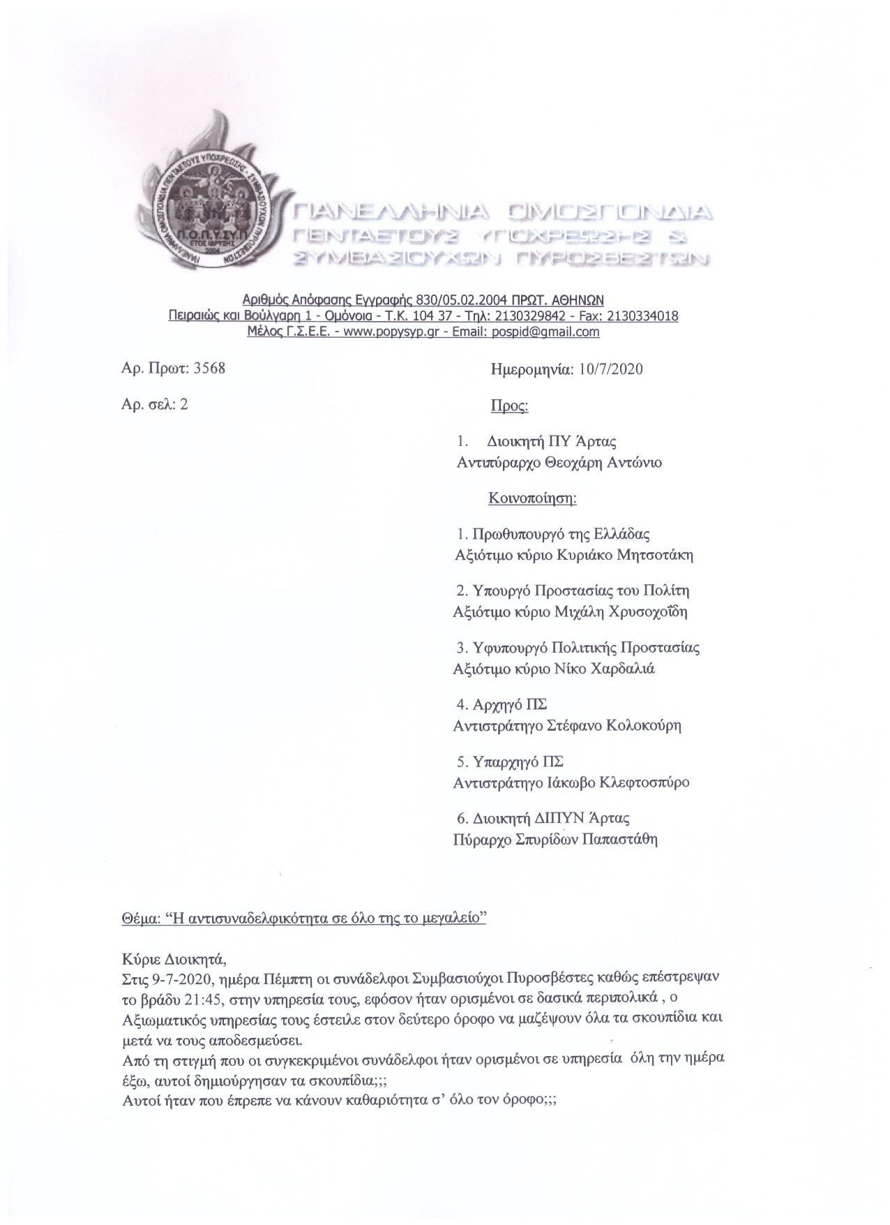Αρ. Πρωτ: 3583 Ημερομηνία: 17/7/2020