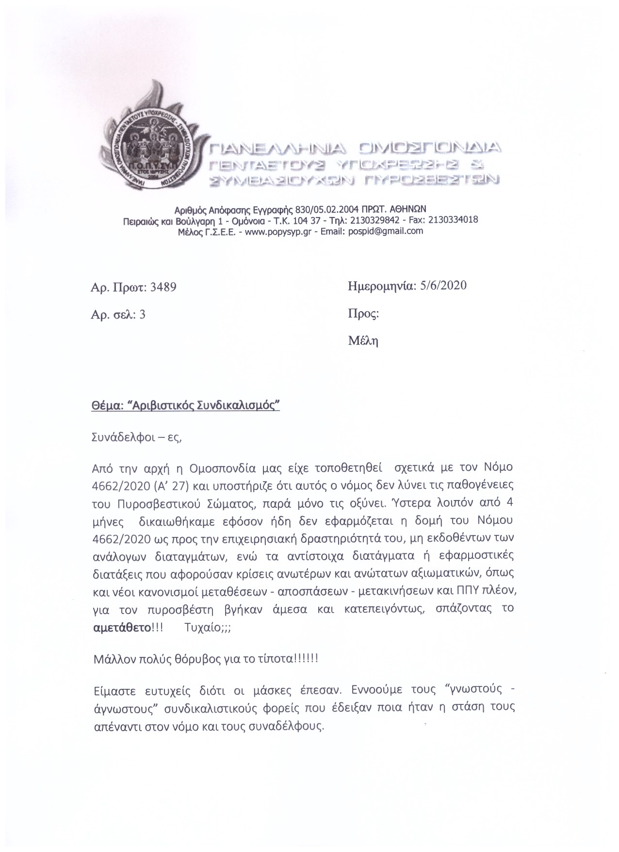 Επιστολή του Σωματείου Πυροσβεστών Δυτικής Μακεδονίας με θέμα: "Οργανική θέση υπαλλήλων που υπηρετούν στα πεζοπόρα" προς το Αρχηγείο ΠΣ