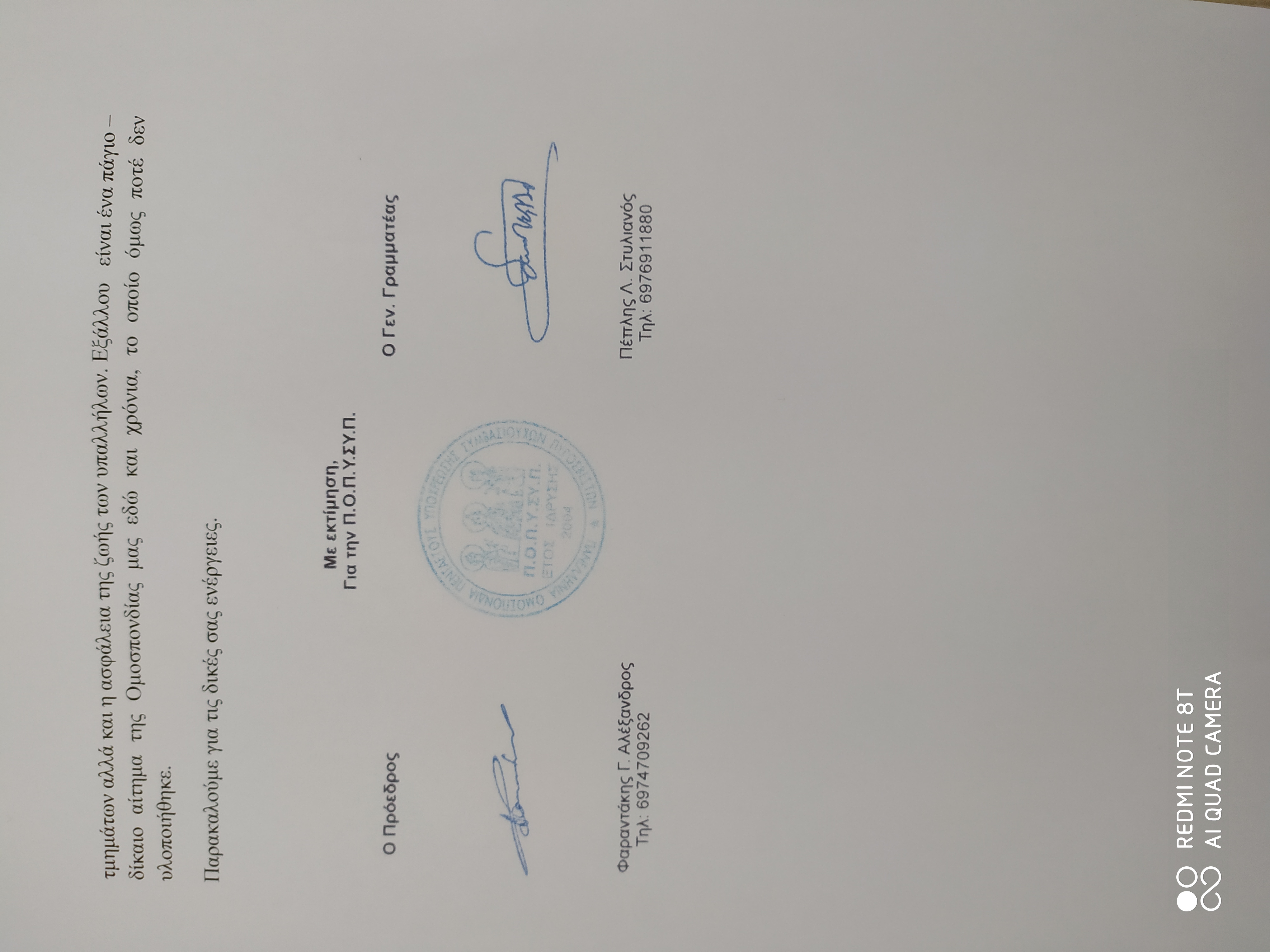Επιστολή με θέμα: "Αίτηση εκδήλωσης ενδιαφέροντος για τα Πεζοπόρα Τμήματα 2020"