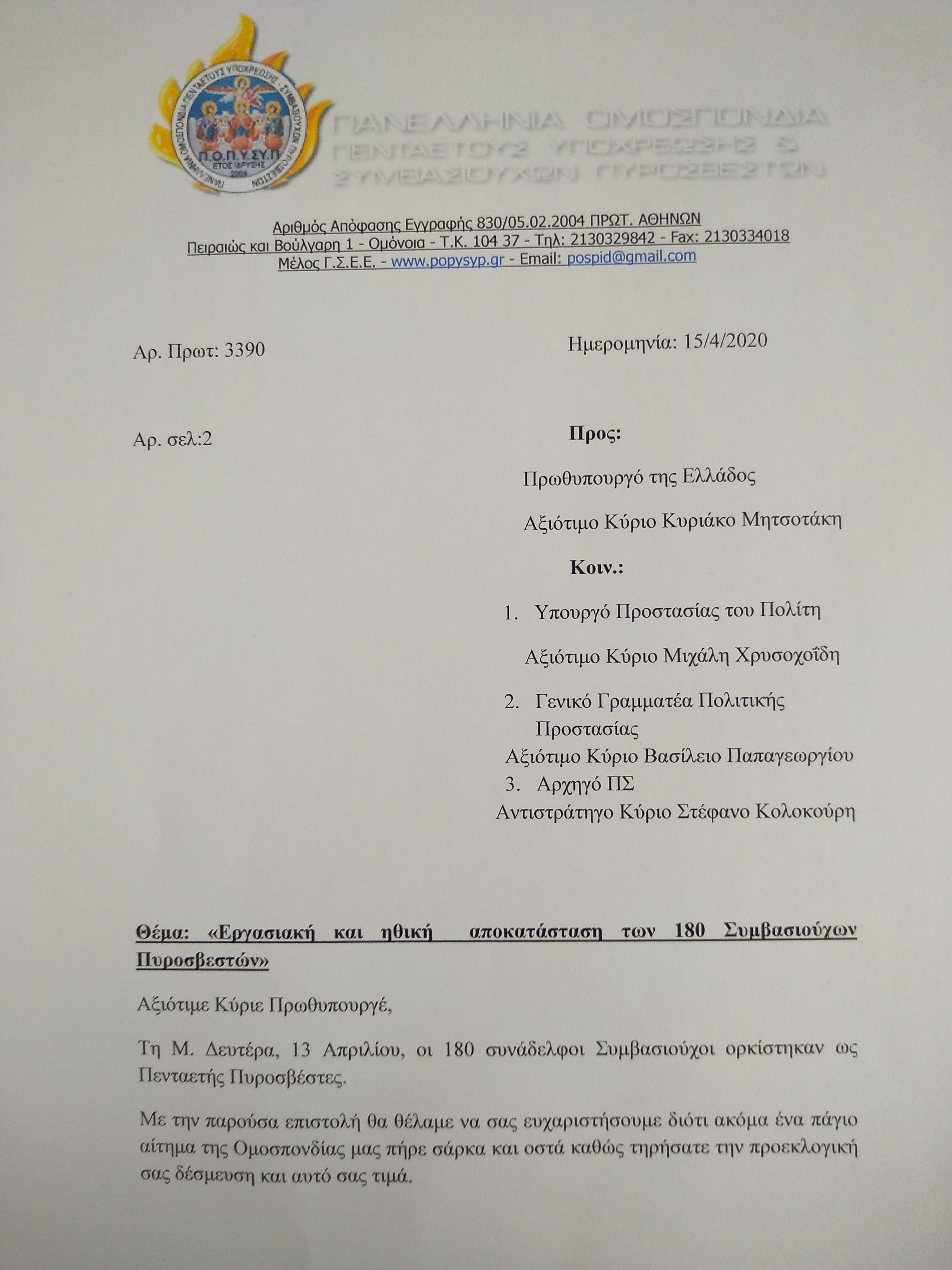 Εργασιακή και ηθική αποκατάσταση των 180 Συμβασιούχων Πυροσβεστών