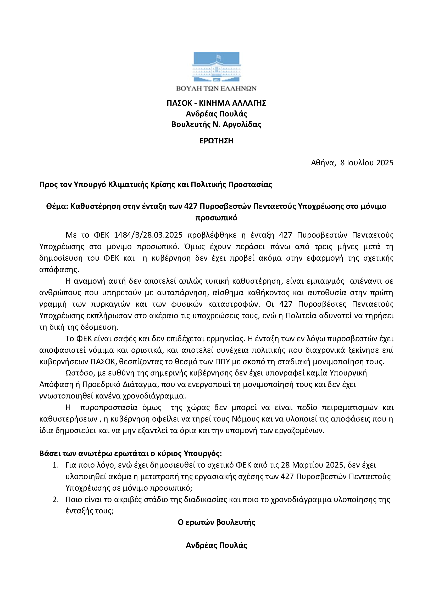Παράσταση Διαμαρτυρίας την Πέμπτη 17 Ιουλίου 2025, στο Σύνταγμα στις 11.00 π.μ.